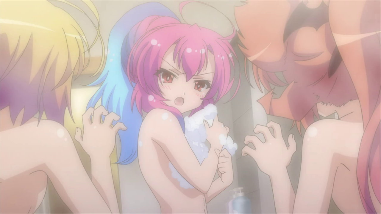 入浴中、胸の大きさを気にするヒメア。