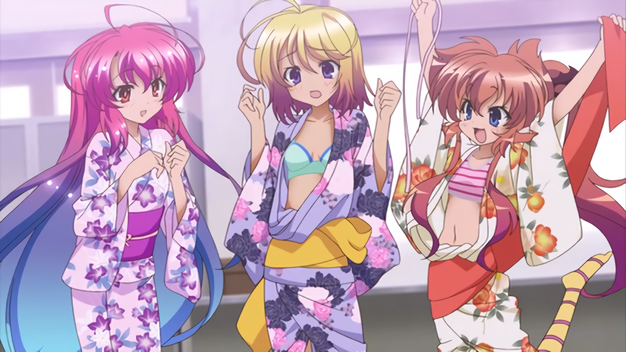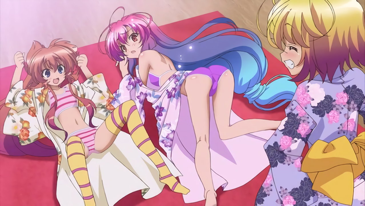 浴衣が脱げて下着丸見えの、美雷およびヒメア。