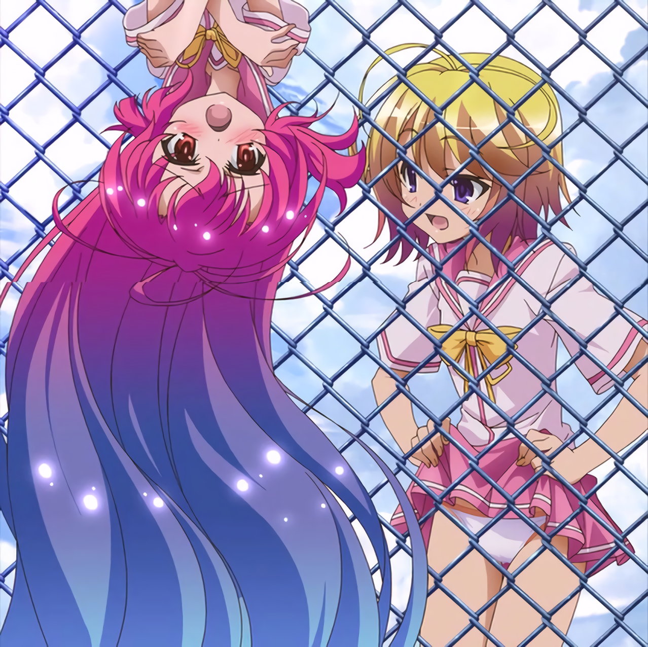 フェンスに吊り下がり、パンツ丸見えのヒメア。