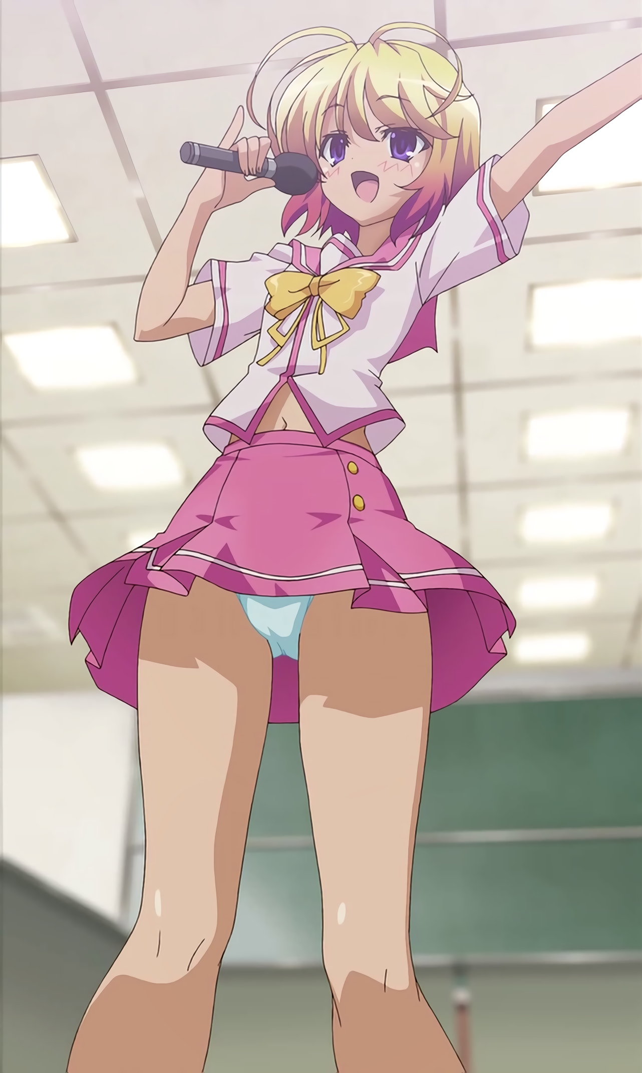 マイクを握りパンチラする泉。