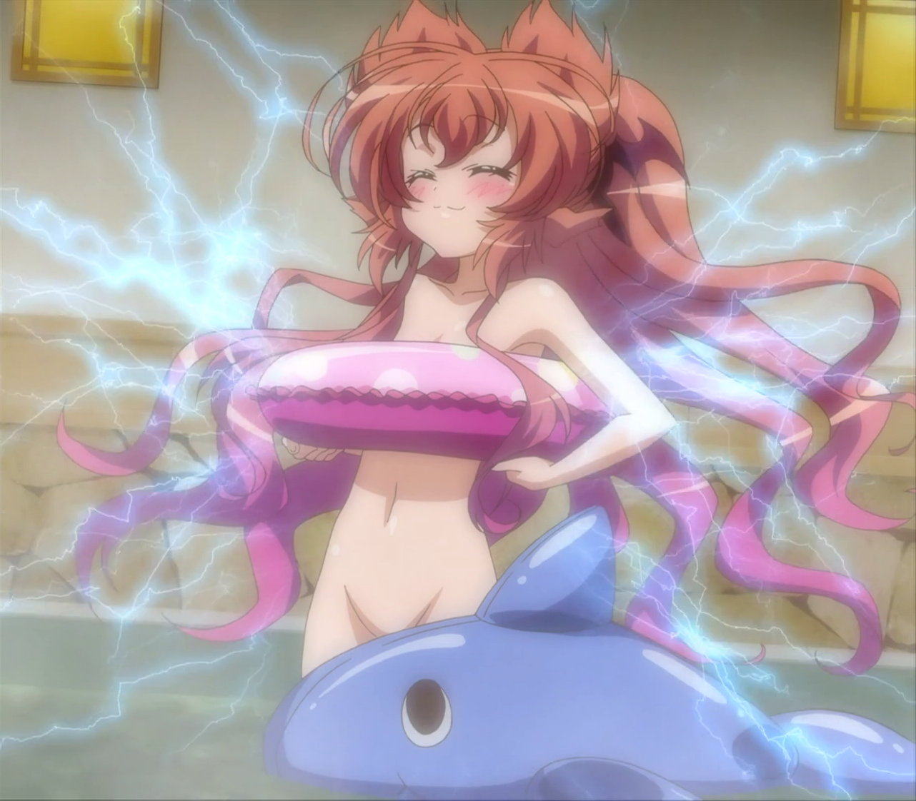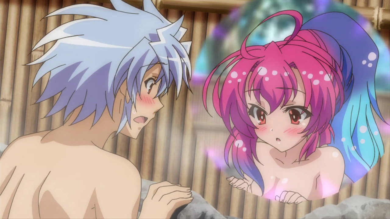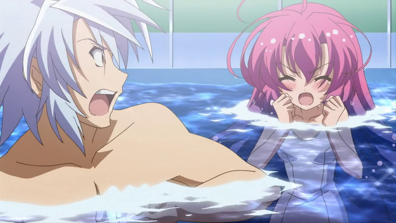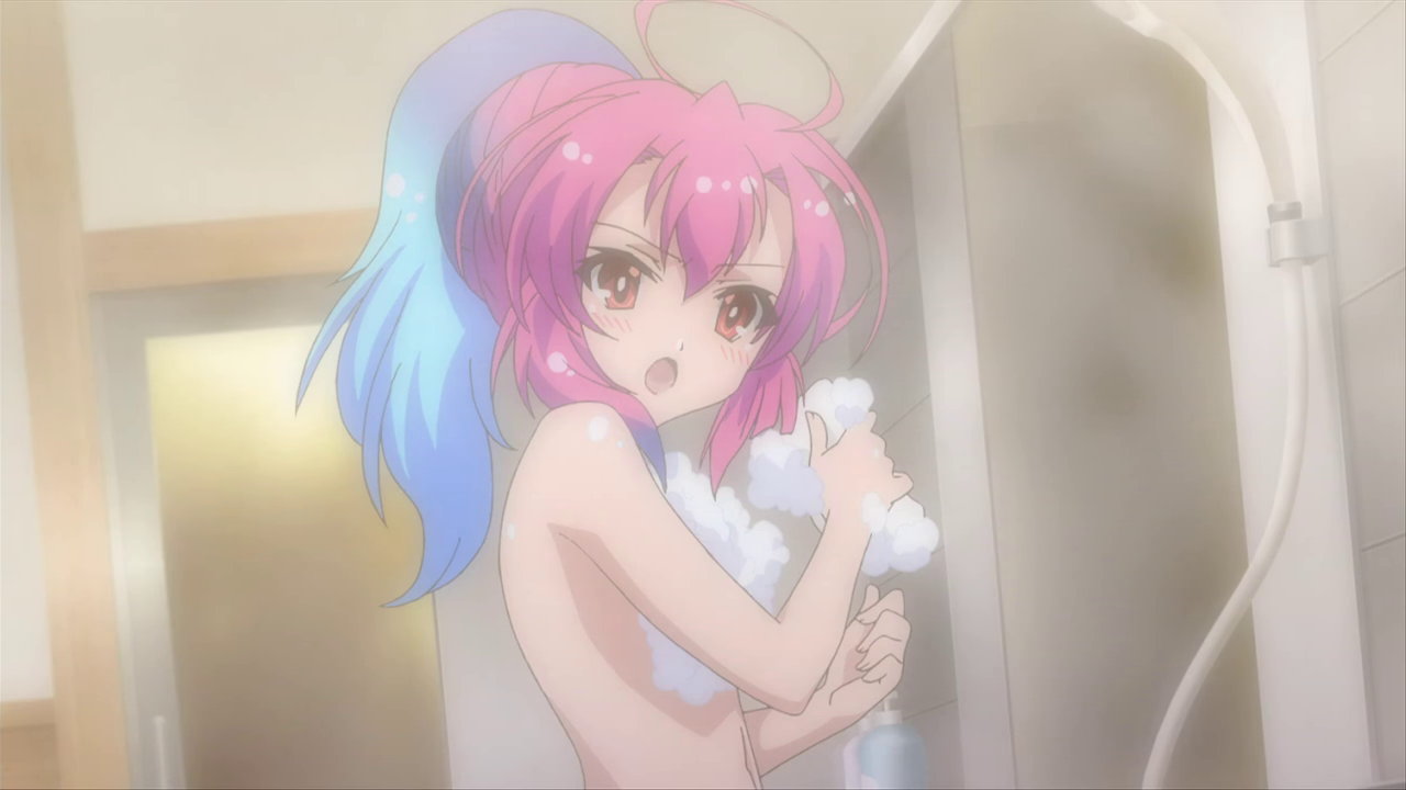 大兎が入浴中の風呂場に乱入する、水着姿のヒメア。