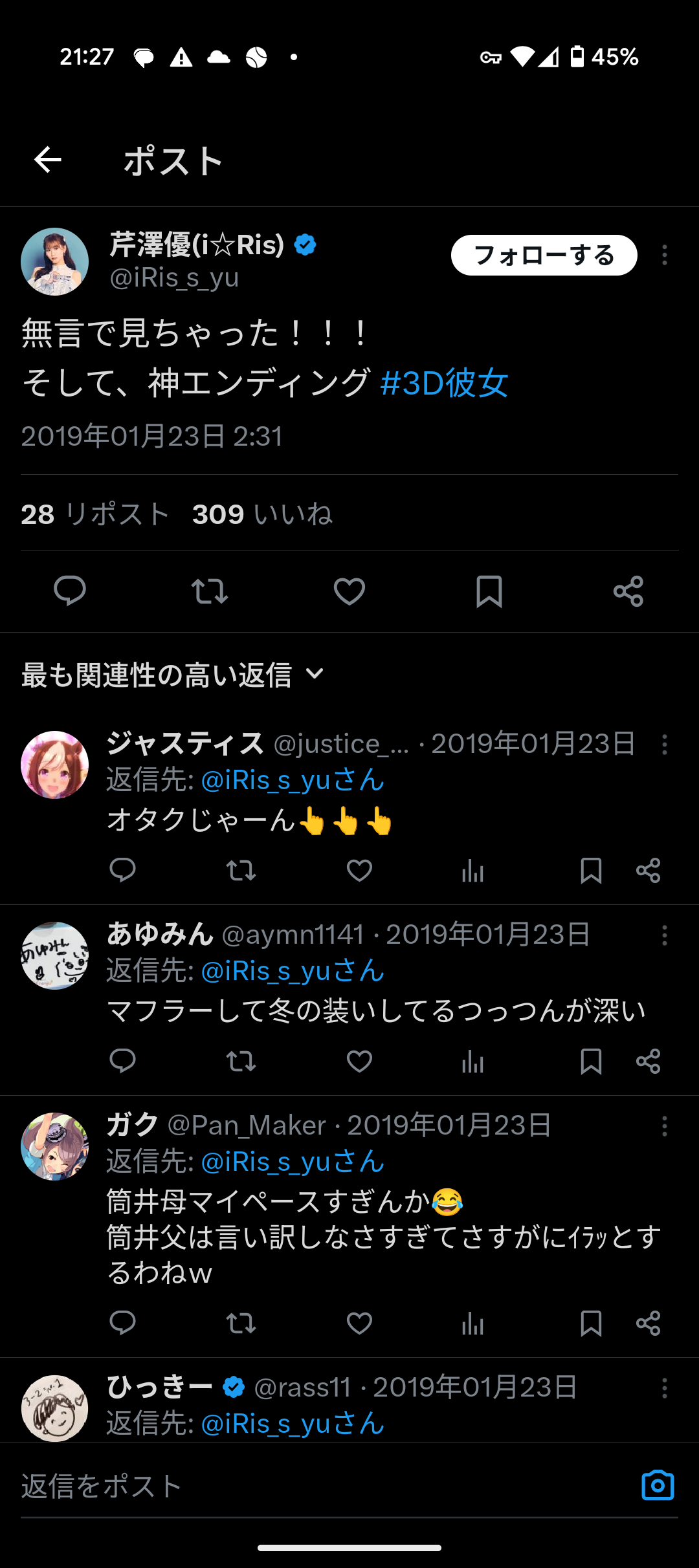 モナちゃんあやさやと思ってたから芹澤でびっくりや