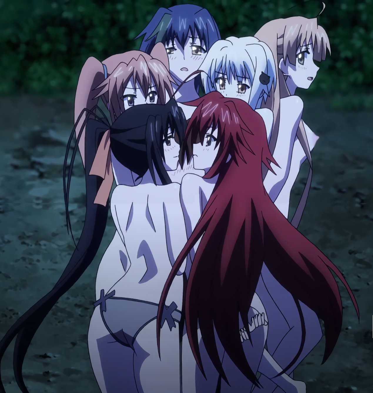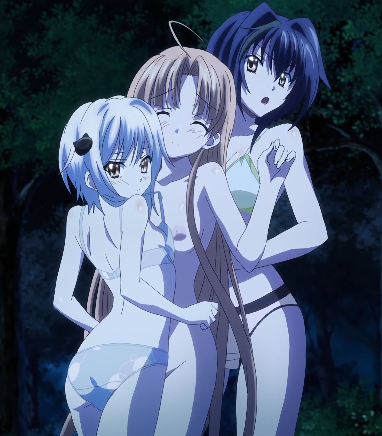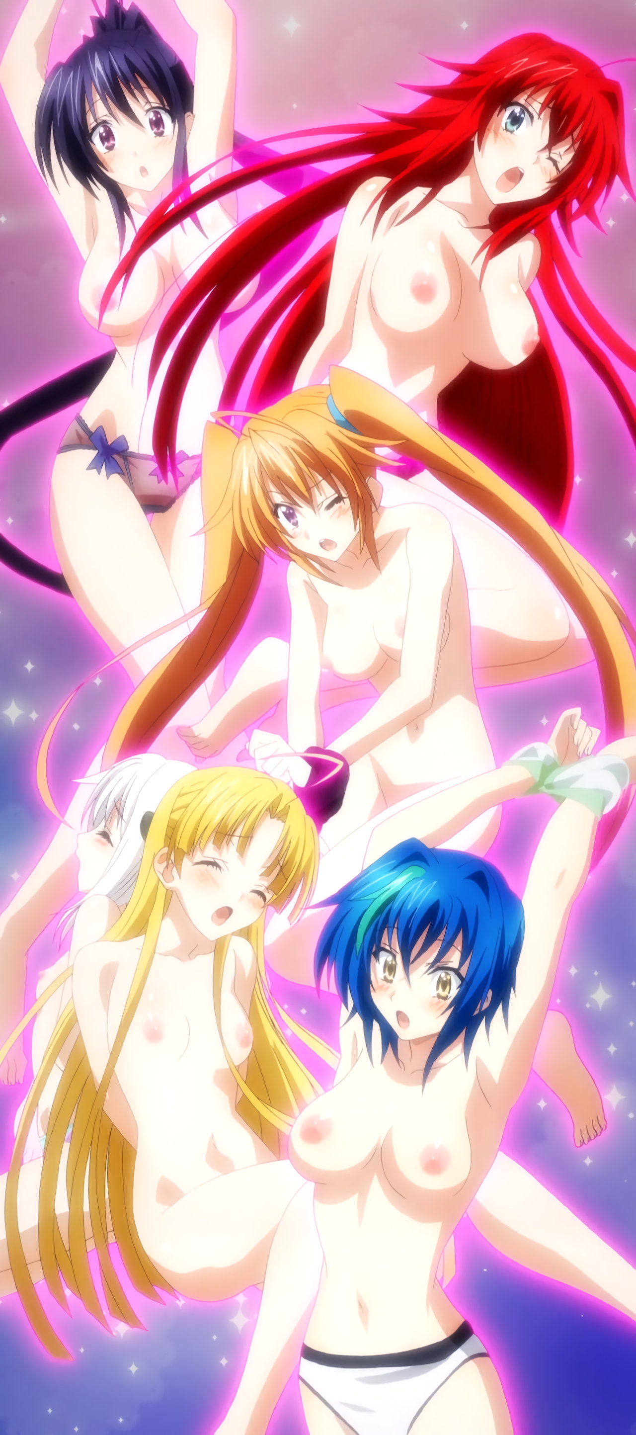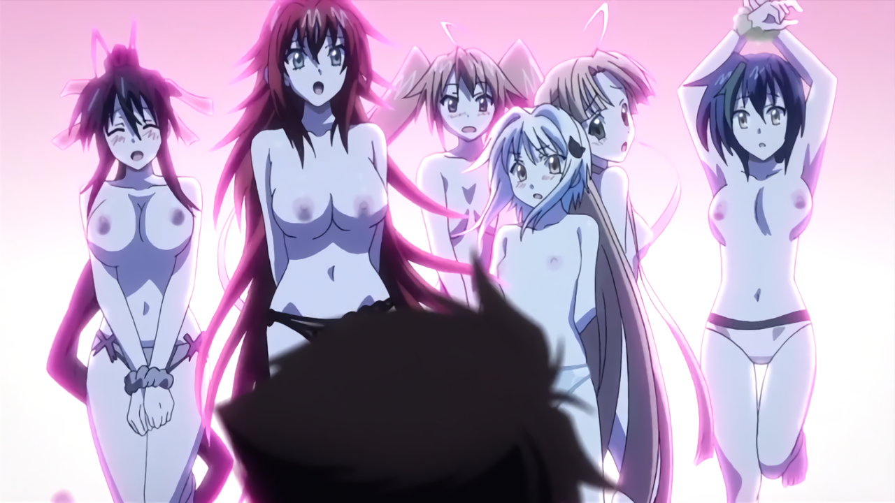 ブラジャーを剥ぎ取られ、パンツ一丁になるリアスたち。
