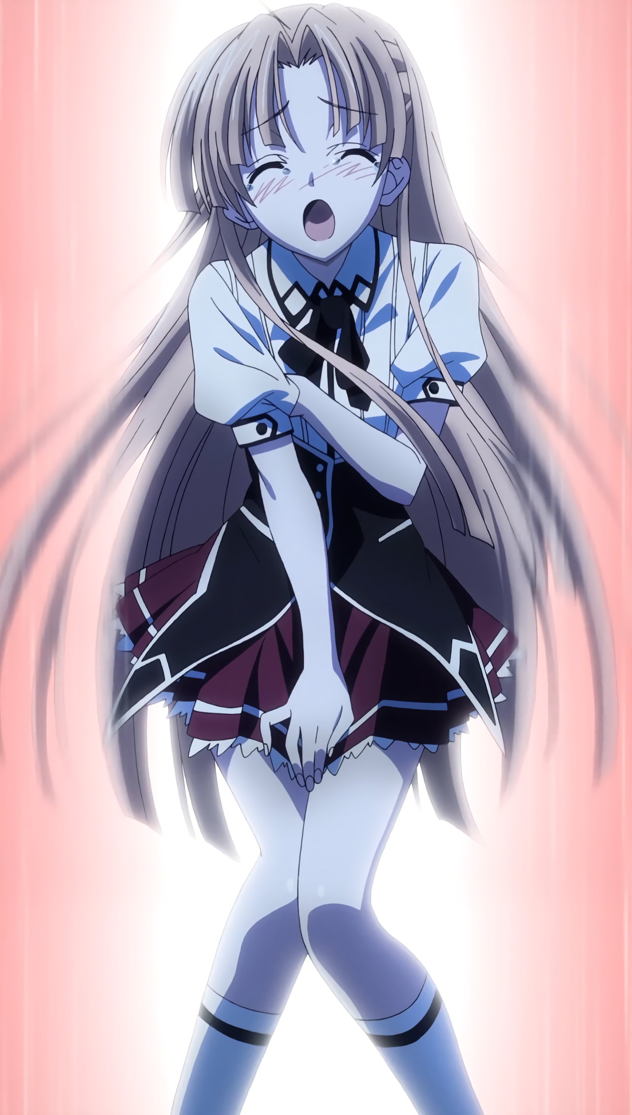 股間を押さえる、ノーブラ・ノーパン状態のアーシア。