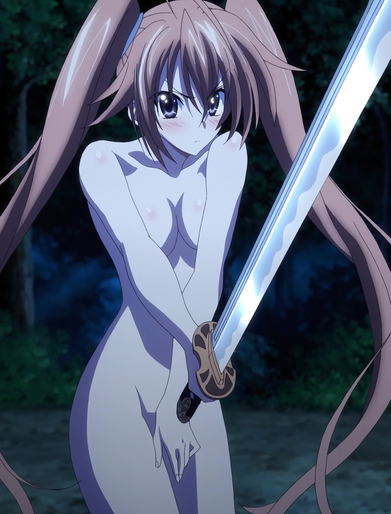 賢者に剣を向ける、全裸のイリナ。