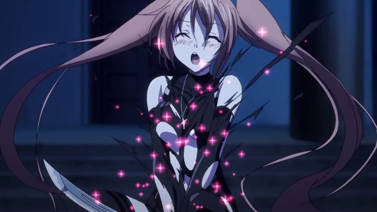 賢者の念力により、制服を切り裂かれた小猫。