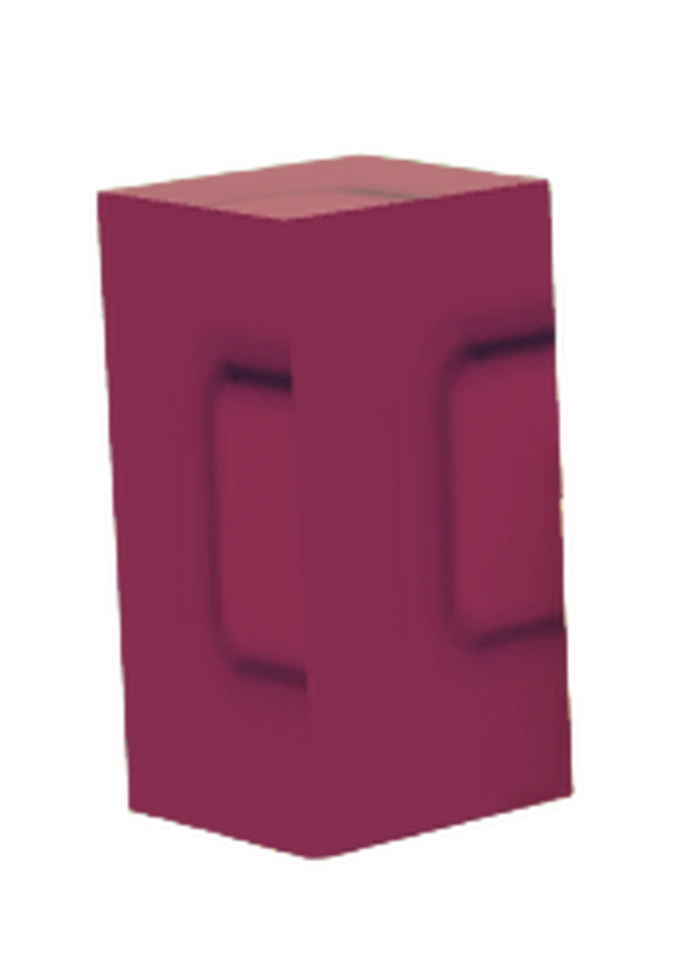 The Moon Melon has a square crimson body with a short, vertical, thick green stem on its top. The Moon Melon seed is a dark peach color.