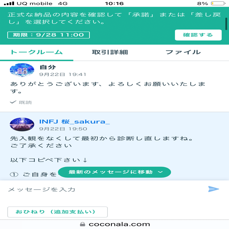 それを真っ先にいいねしてくださったのが、澪さん……改め、桜さん。MBTIは……ENTPじゃなくてINFJになってたよね?で、コメント欄で、もう一度診断させてください!って!何事?って思ったけど、大好きな桜さんのためなら……!って、受け入れることにしたんだよね、これ、再診断を受けた、ちょっとした根拠。