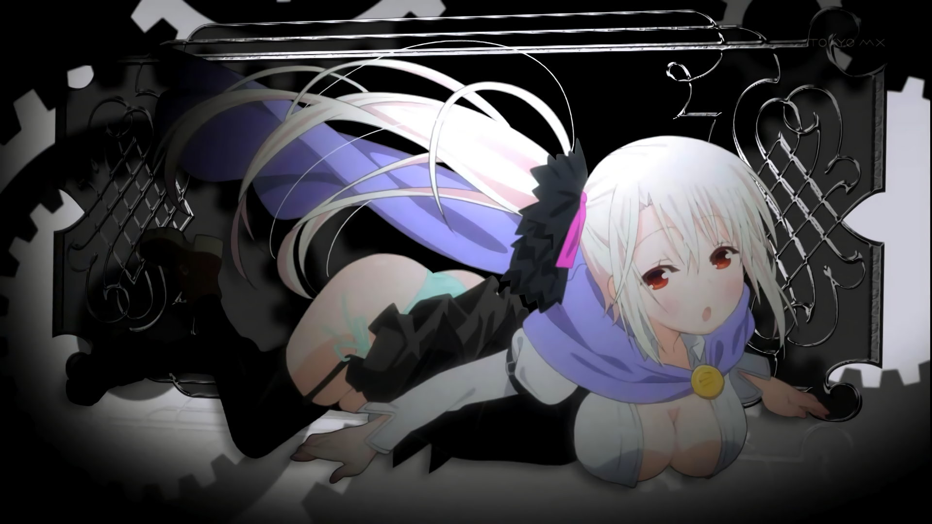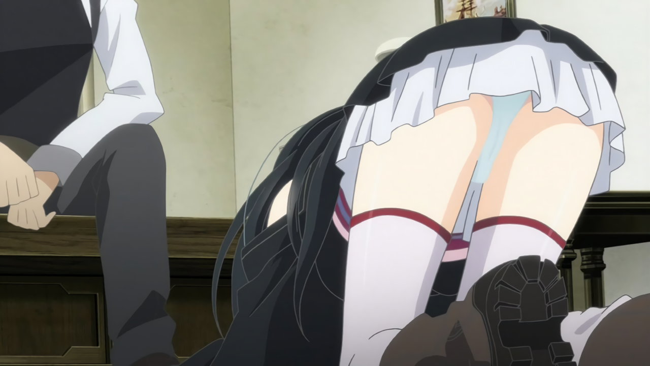 第5話:乳房を接地させ、スカートがずり落ちてパンチラしているフレイ。