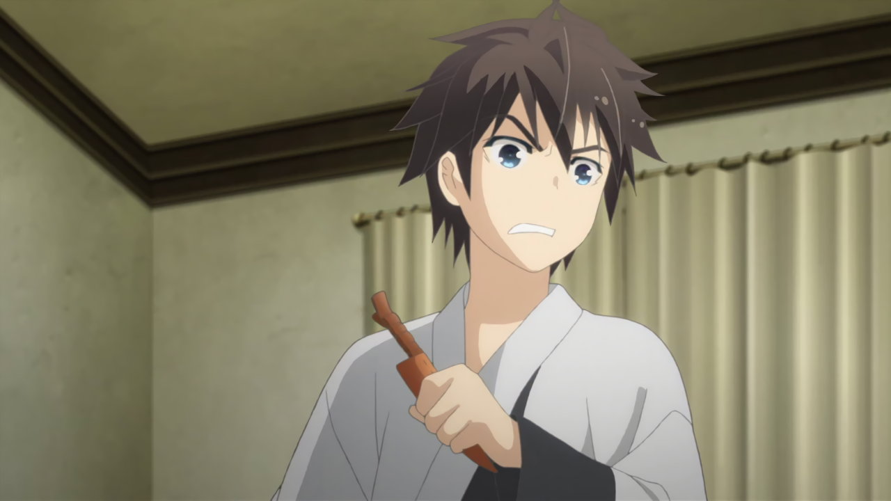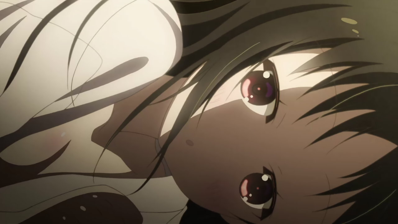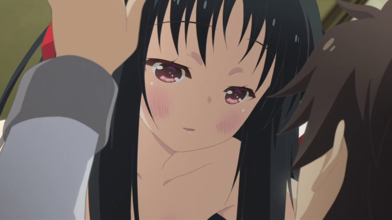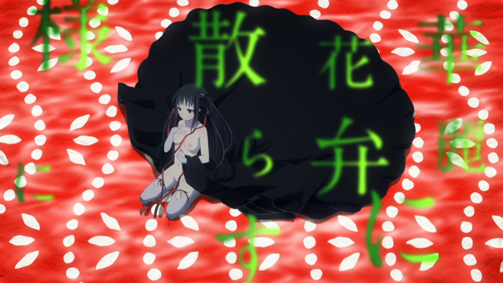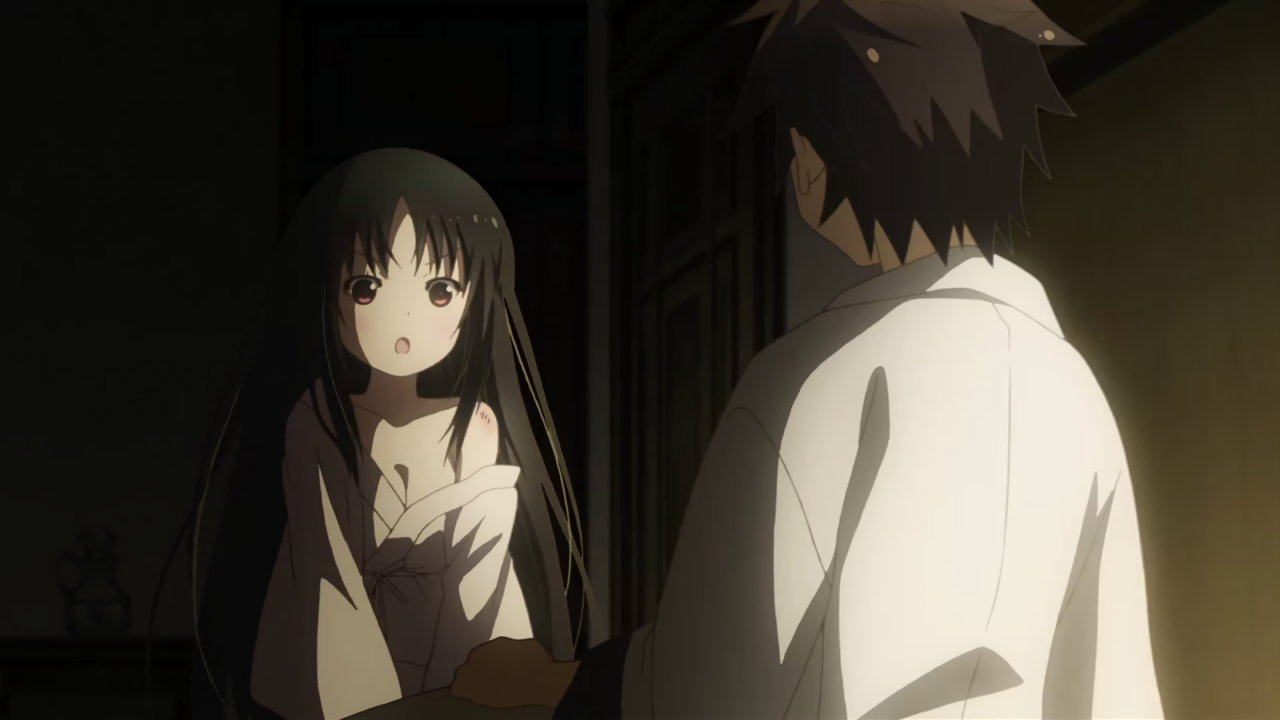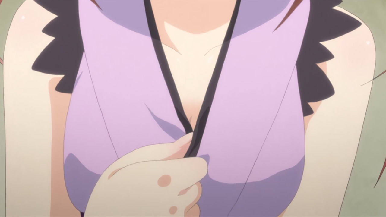第3話:着物の衿を開き、肩と胸を露出させる硝子。