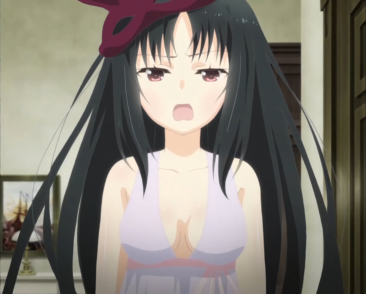 雷真に許嫁が居ることを告げられた夜々。下着姿で泣きながら雷真の首を絞める。