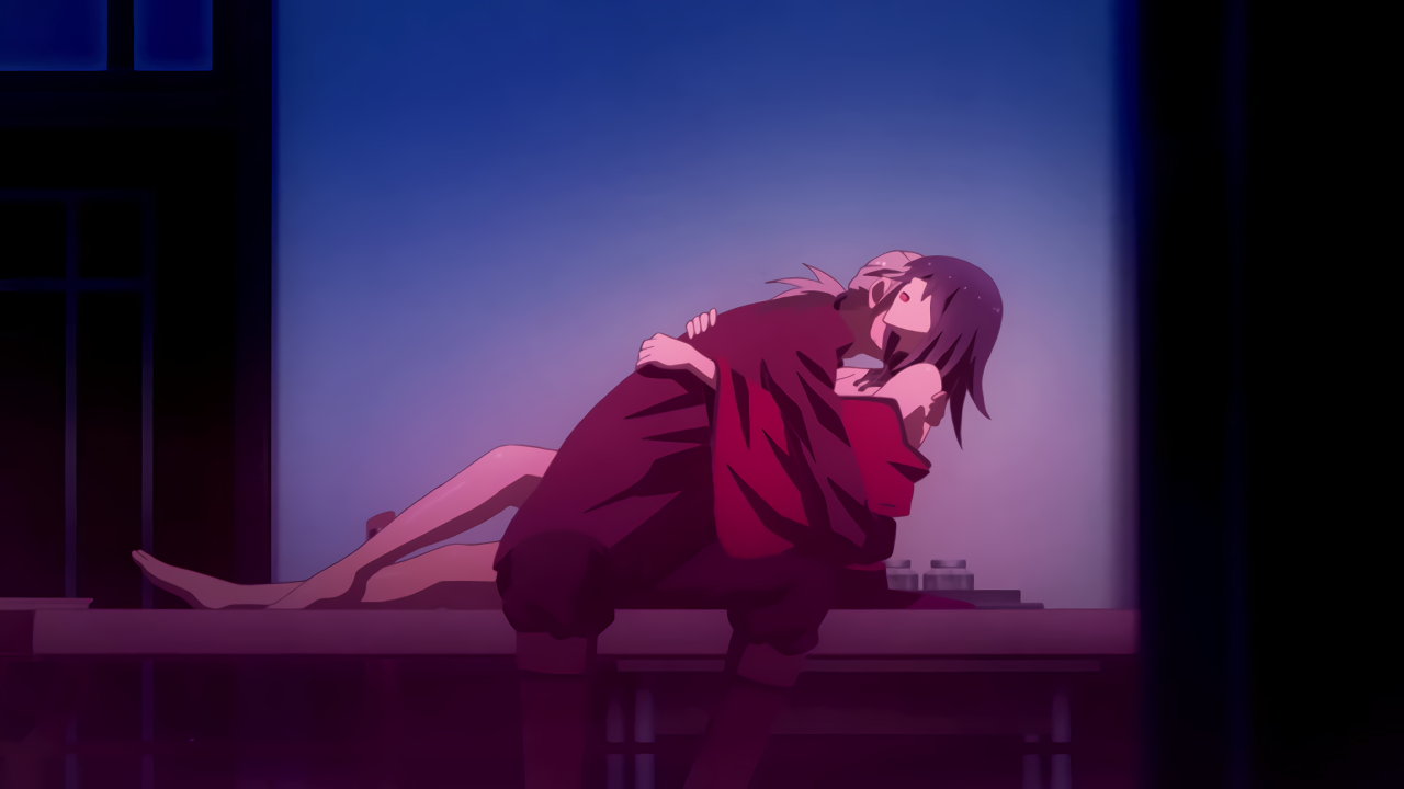 第1話:着物が着崩れて肩を露出させた夜々。
