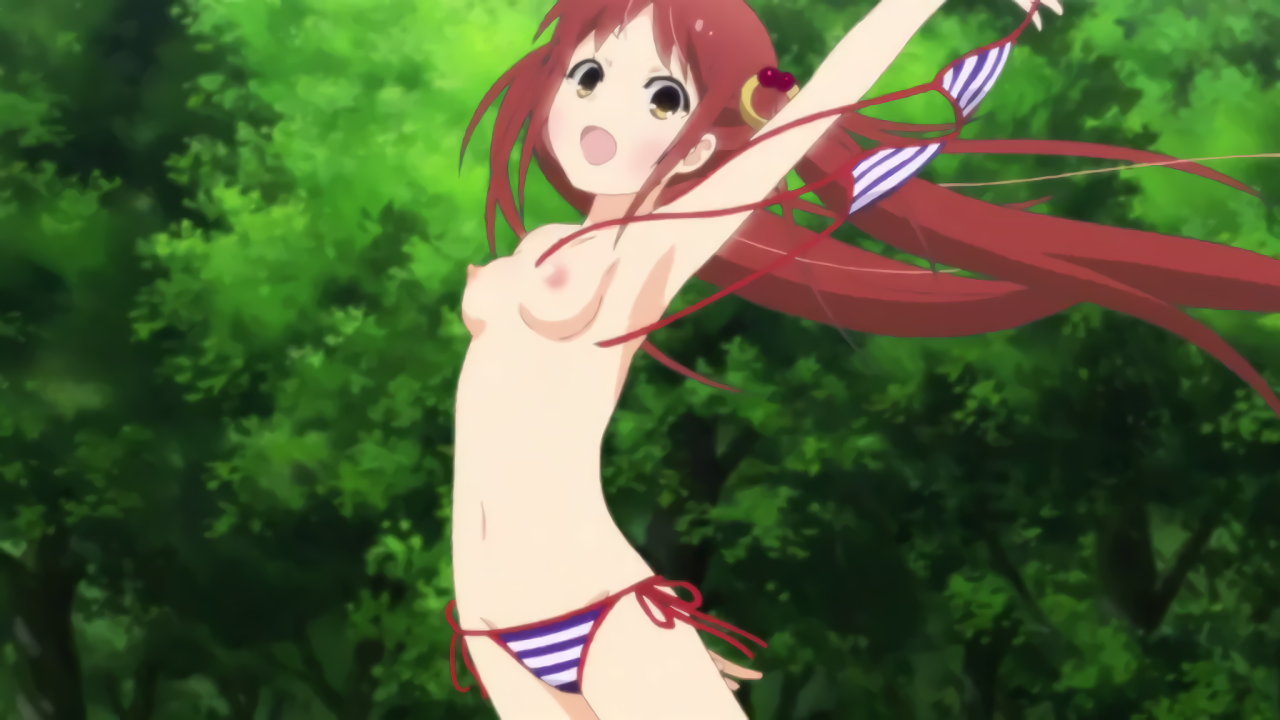 ビキニトップを脱ぎ捨て、乳首全開の小紫。