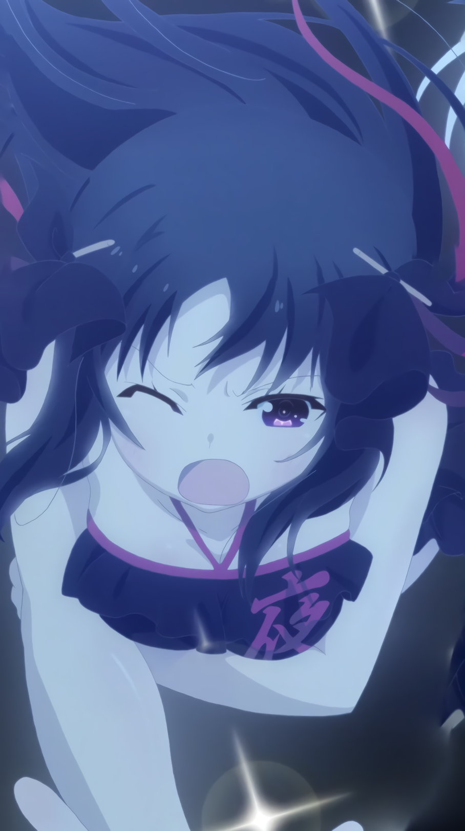 下水道に落ち、汚水でずぶ濡れとなった小紫。スカートを絞る際、パンツが丸見えになる。