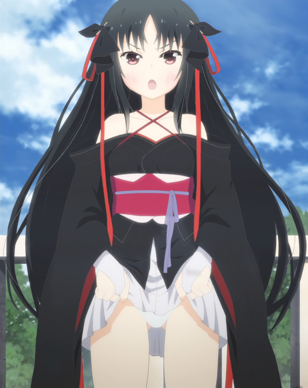 着物の裾を捲り上げ、雷真にパンツを見せる夜々。