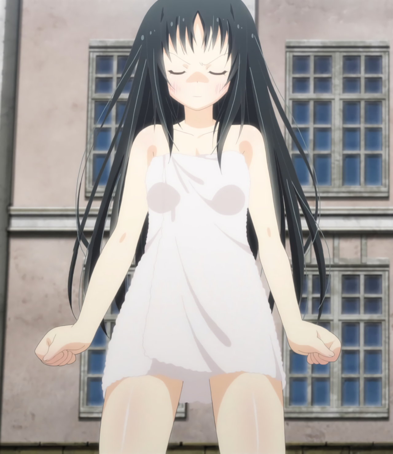 裸バスタオル姿で雷真の前に現れ、フレイ抹殺命令を求める夜々。