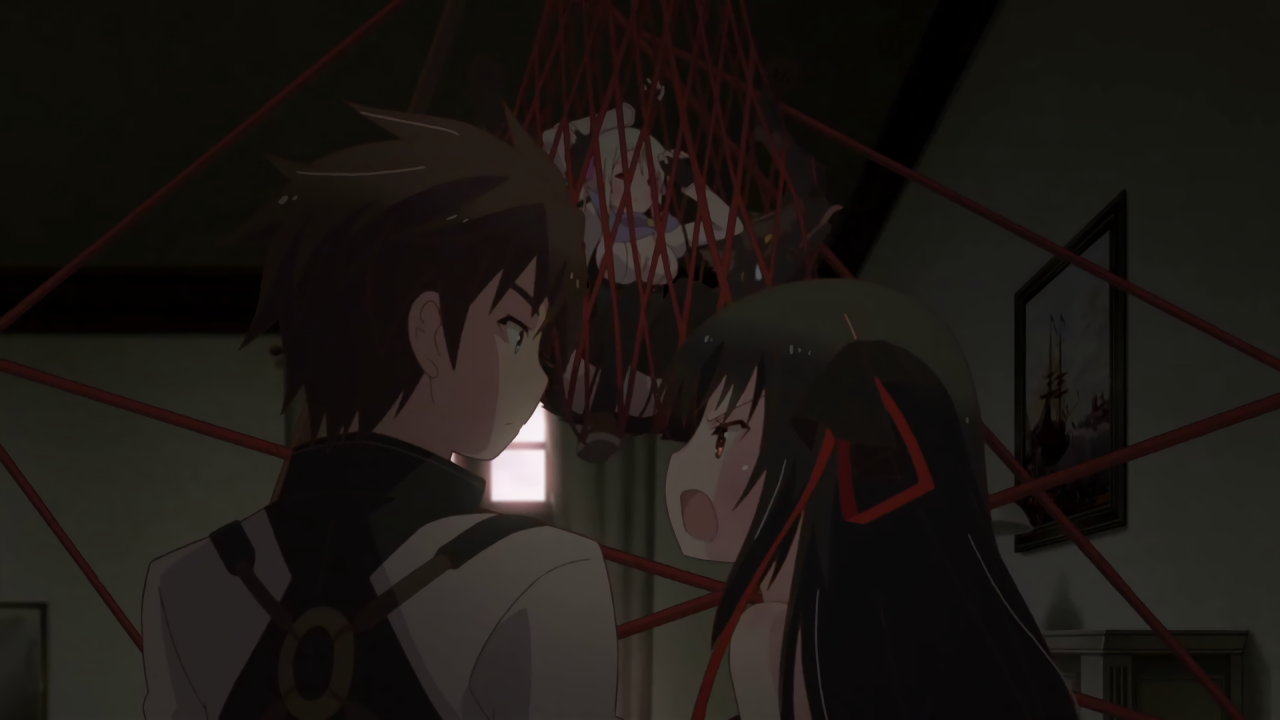 雷真の部屋を訪れたフレイ。ドア越しに夜々との痴話喧嘩を耳にして赤面する。