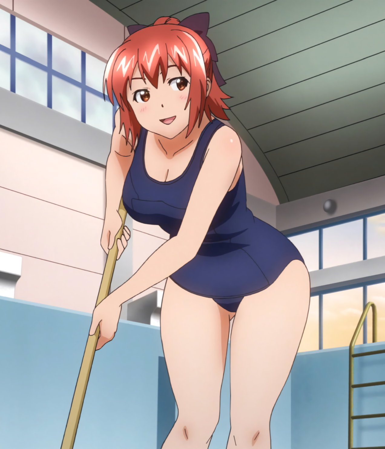水着姿でプール掃除中の統制会メンバーたち。実、豊華はスクール水着を、秋はビキニを着用。