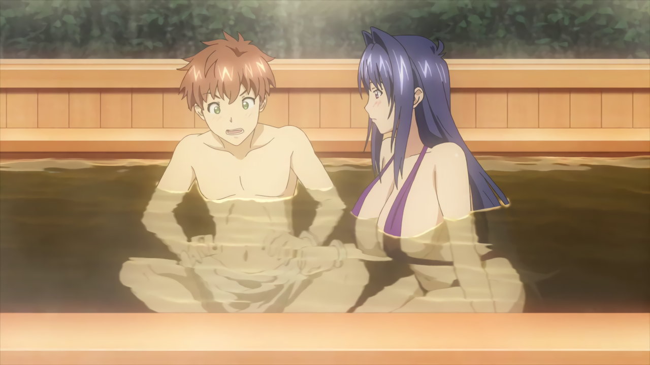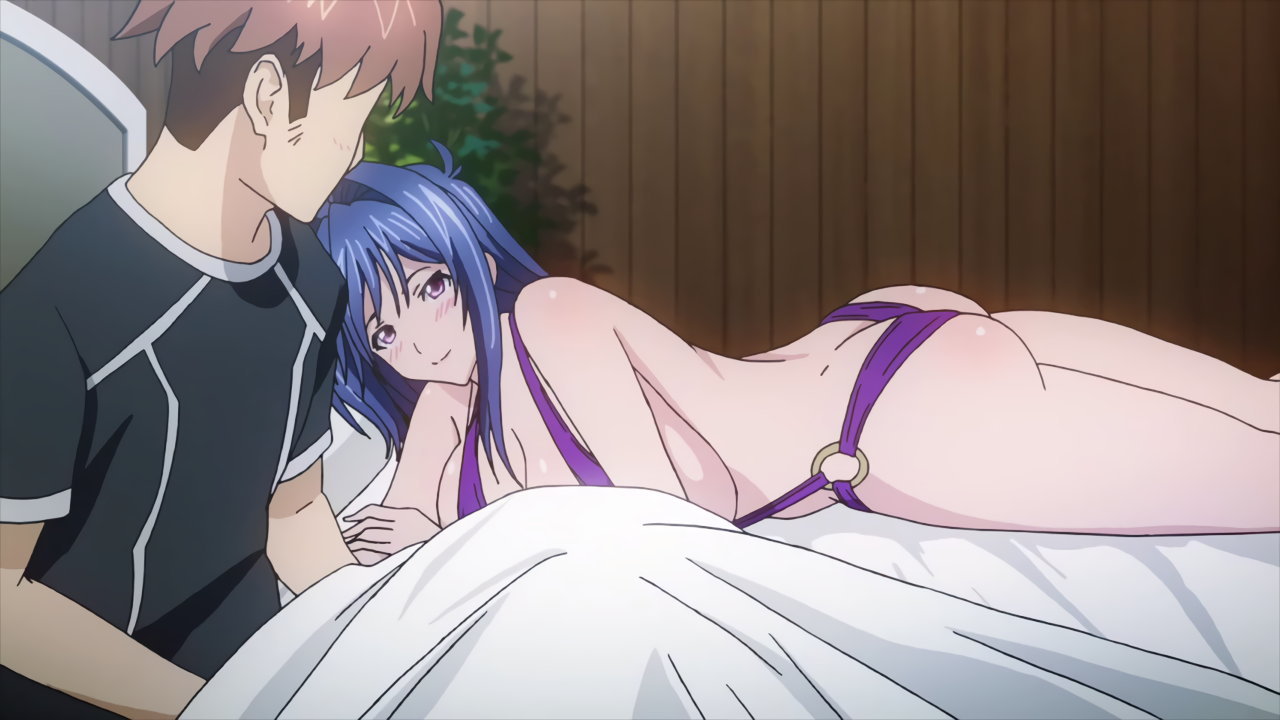 翌朝、目を覚ましたタケル。隣には、水着姿でベッドに寝そべる秋が居た。