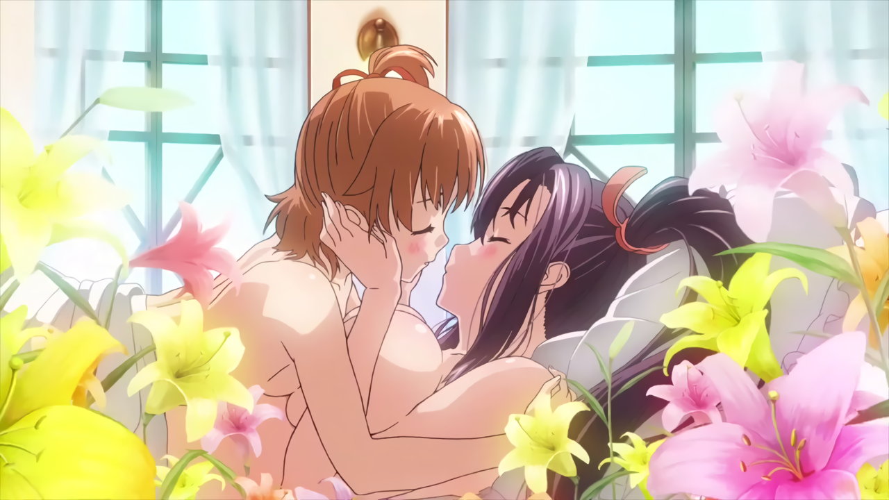 裸で抱き合い百合キスをする、イナホと春恋。