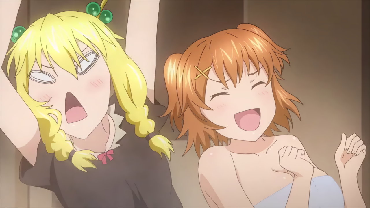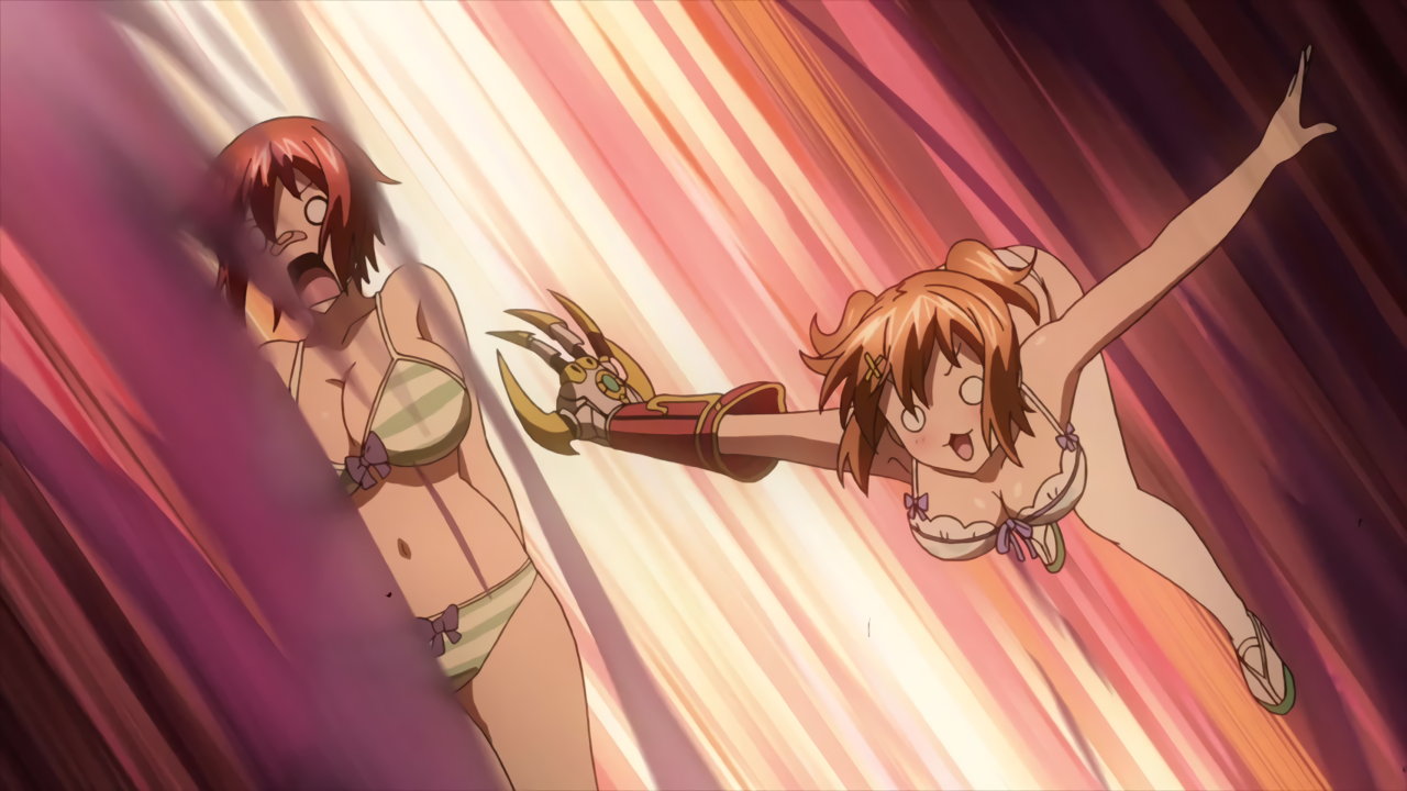 まひるによる返り討ちに遭うイナホとアズキ。服が破れ、下着丸出しになる。