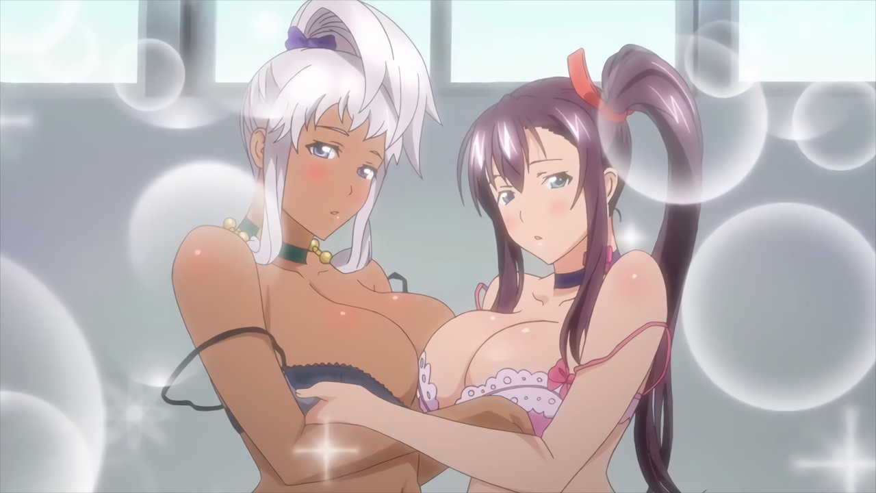 催眠術を掛けられた、春恋とチャチャ。互いにブラジャーを脱がせ合う。