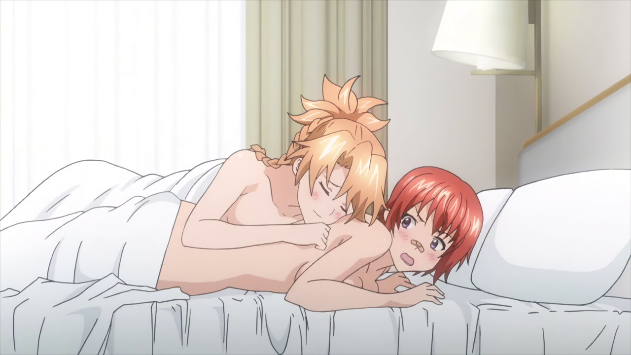 裸シーツで朝チュンするアズキおよび楓蘭。