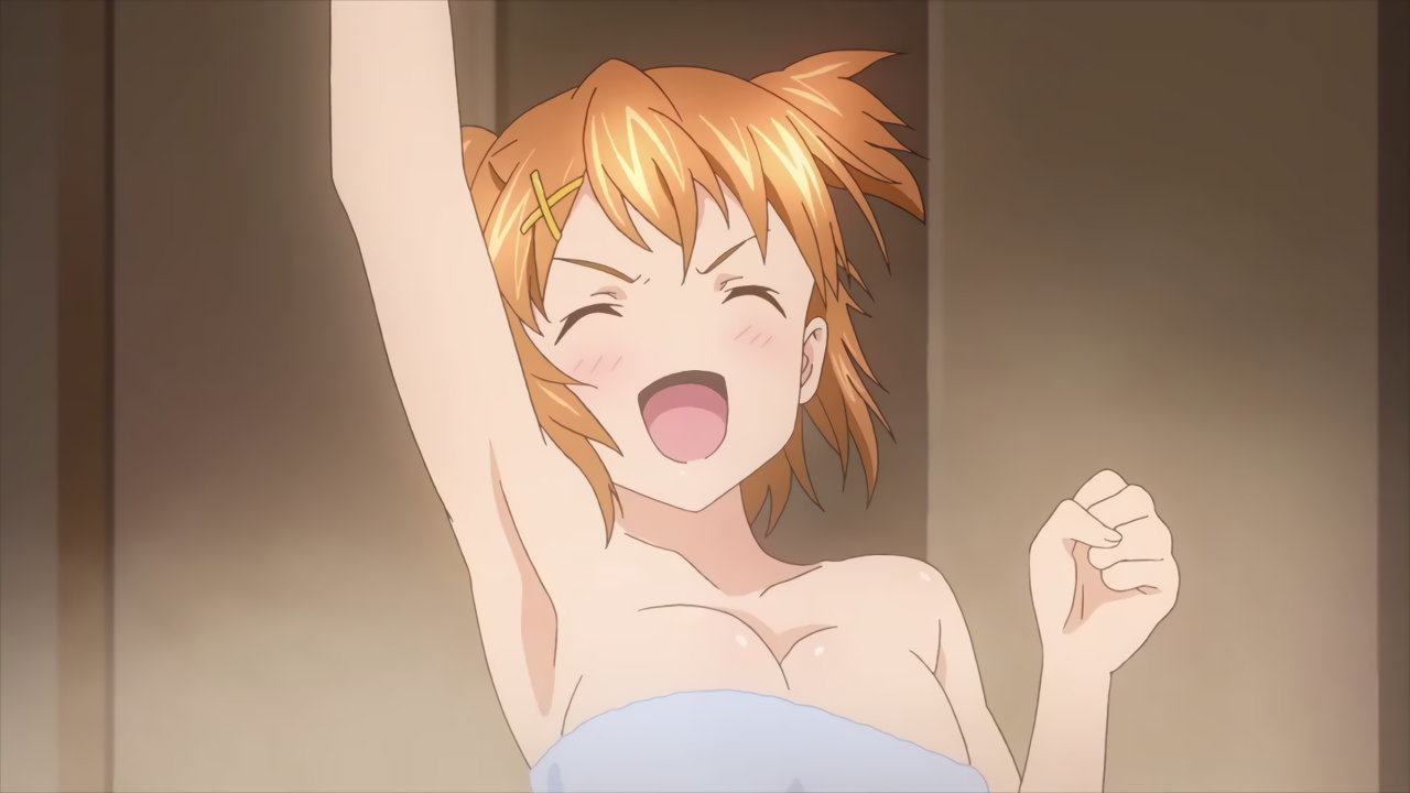 裸バスタオル姿で風呂場に現れる春恋。記憶喪失中のため、やけに積極的な性格になっている。