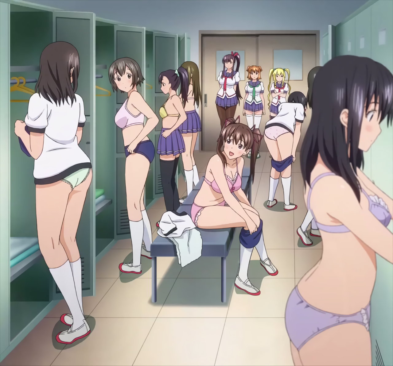 更衣室にて着替え中の女子生徒たち。