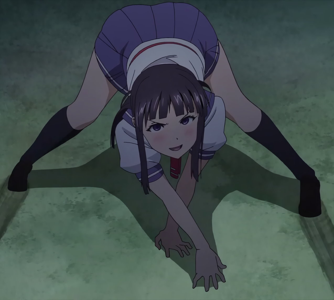 リンボーダンス棒を破壊するコダマのパンチラ。