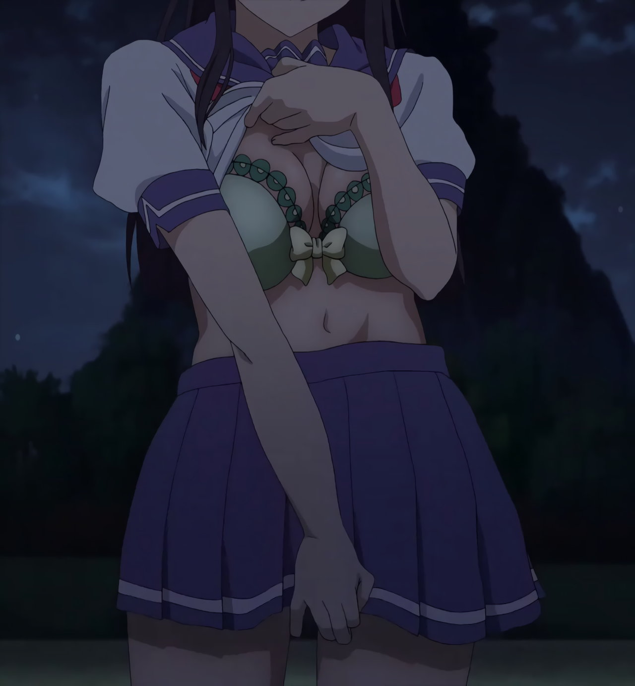 シャツのボタンが外れ、ブラジャー丸見えの秋。