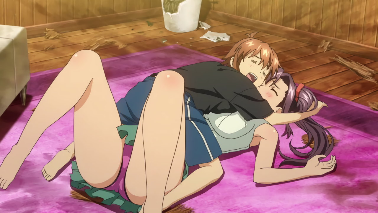 タケコに抱きつかれ、パンチラする春恋。