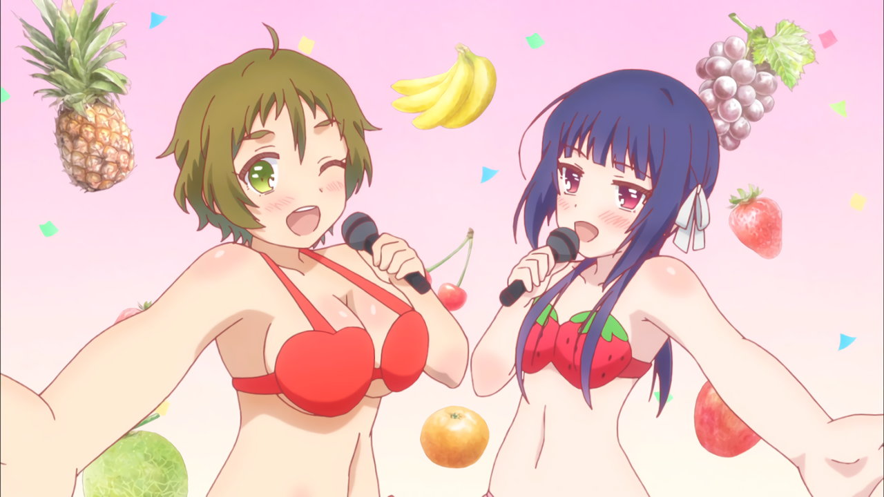 水着姿で歌い踊る、農および林檎。