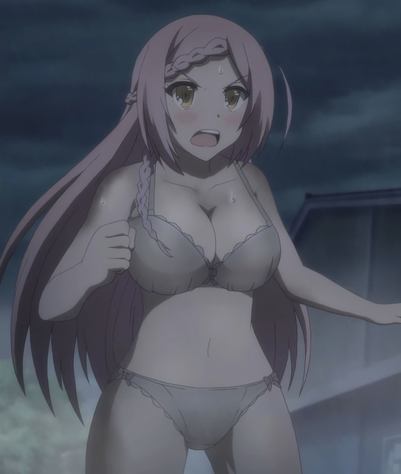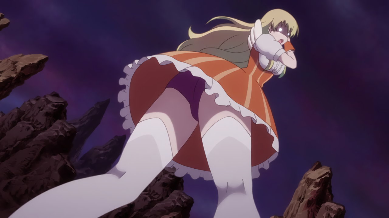風でスカートが捲れてパンツ丸見えの胡蝶。