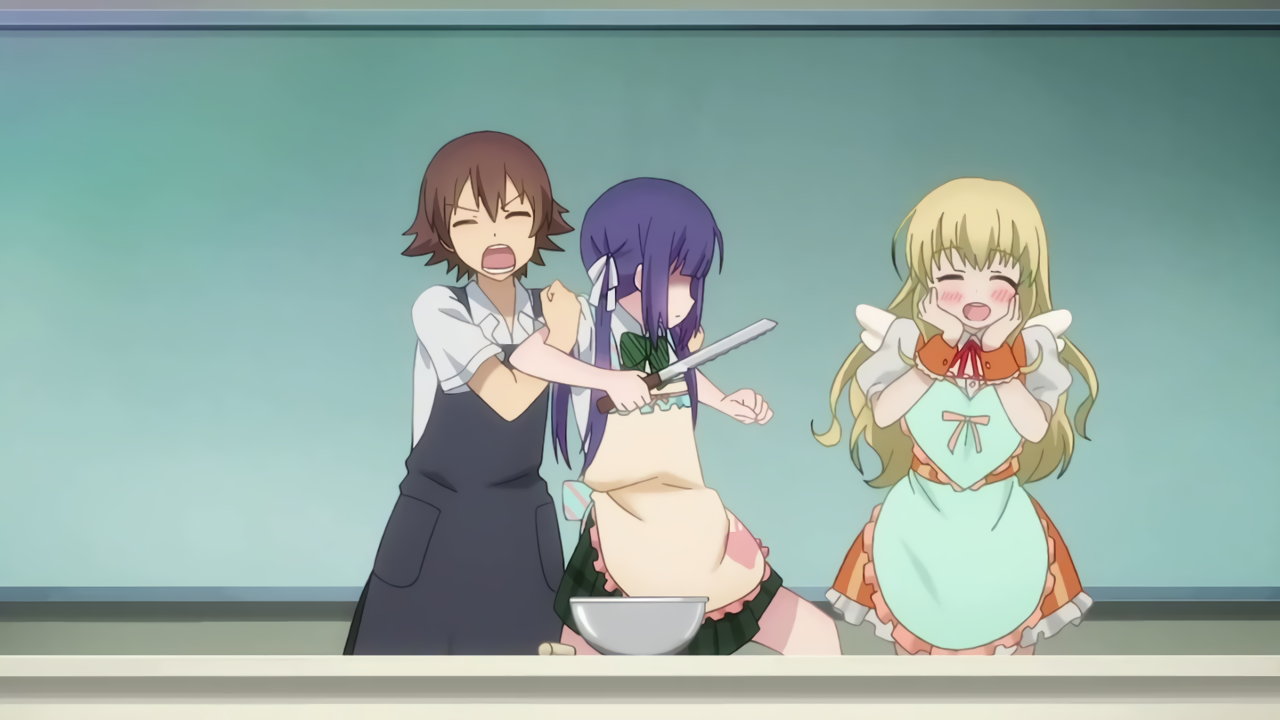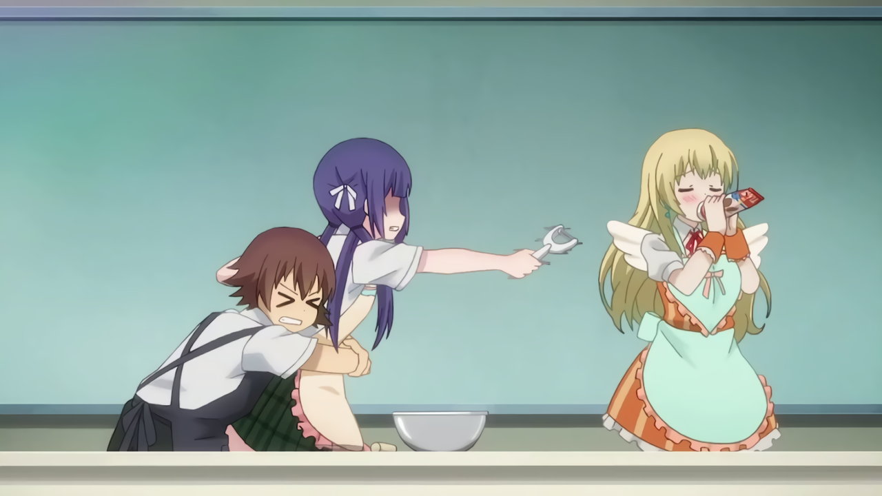 林檎の貧乳を揶揄する菜摘。