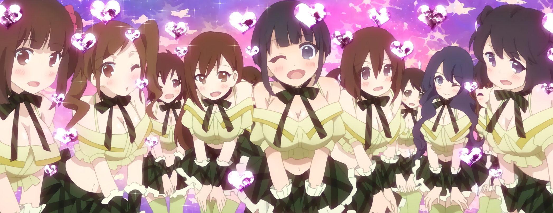 肩出し・臍出し・胸チラのセクシーアイドル衣装を着た女子たち。