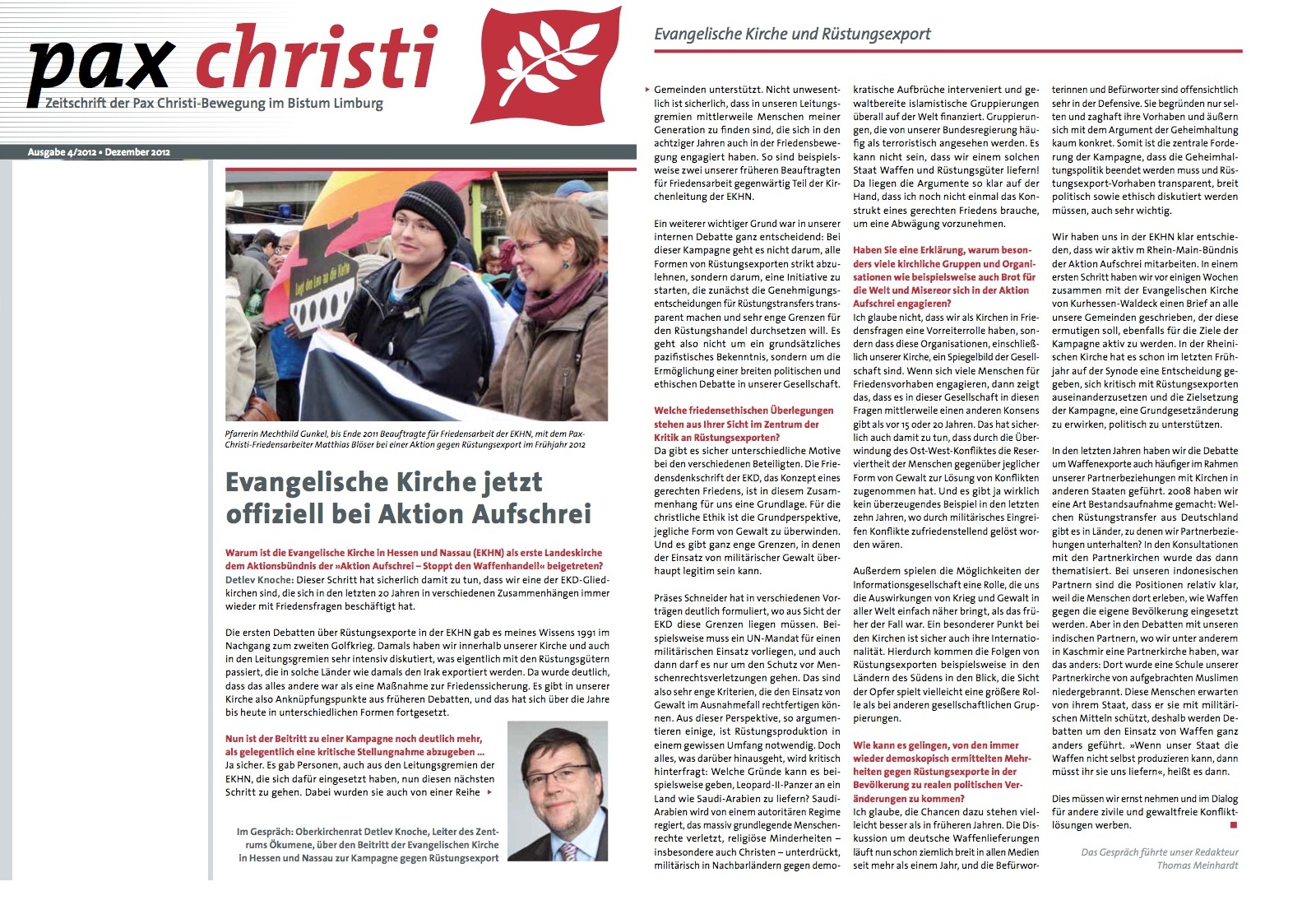 Ähnlich Papst Franziskus auch am 21. Juni 2015: „Manager, Unternehmer die sich Christen nennen und die Waffen herstellen! Das macht mich ein bisschen misstrauisch: Sie behaupten, sie seien Christen!" Was die Kirchen sonst zur Rüstung sagen: 1. Bischöfe, 2. Diözese, 3. GKKE, 4. Radio, 5. EKM, 6. EKHN, 7. EKD