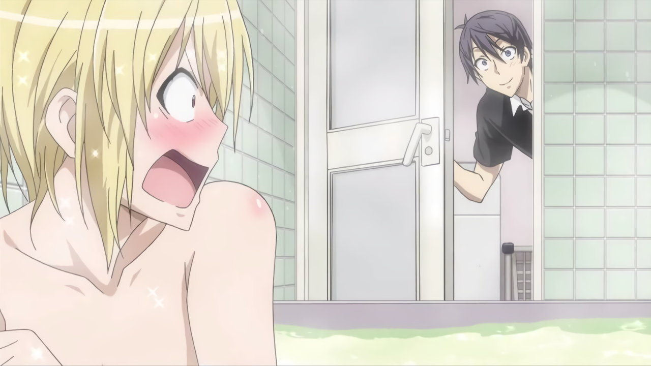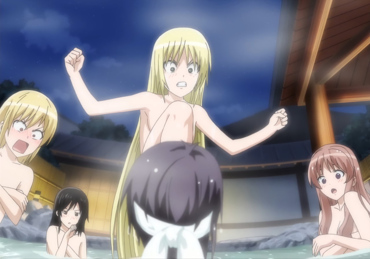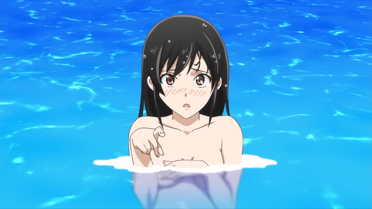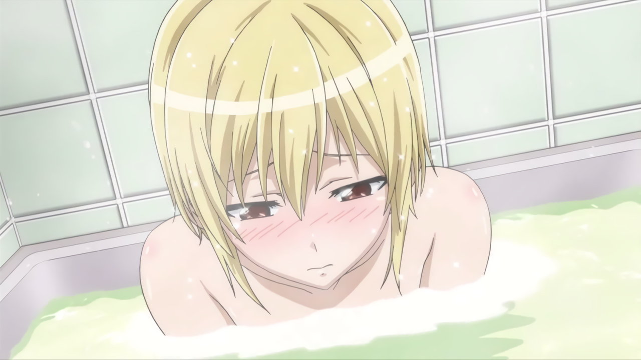 湯船に頭から突っ込む勇気と、アソコを目撃して羞恥するヒロインたち。