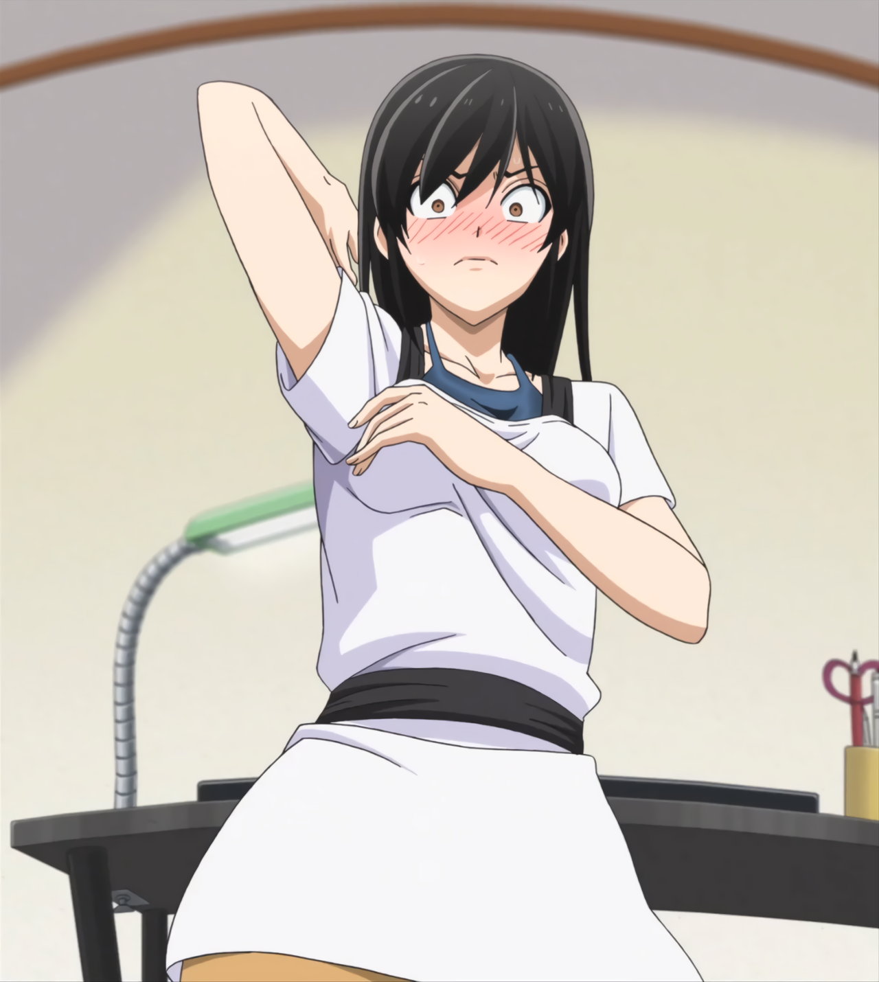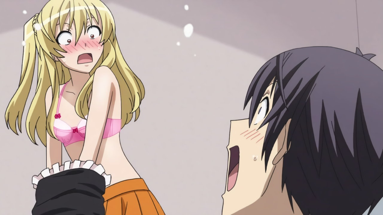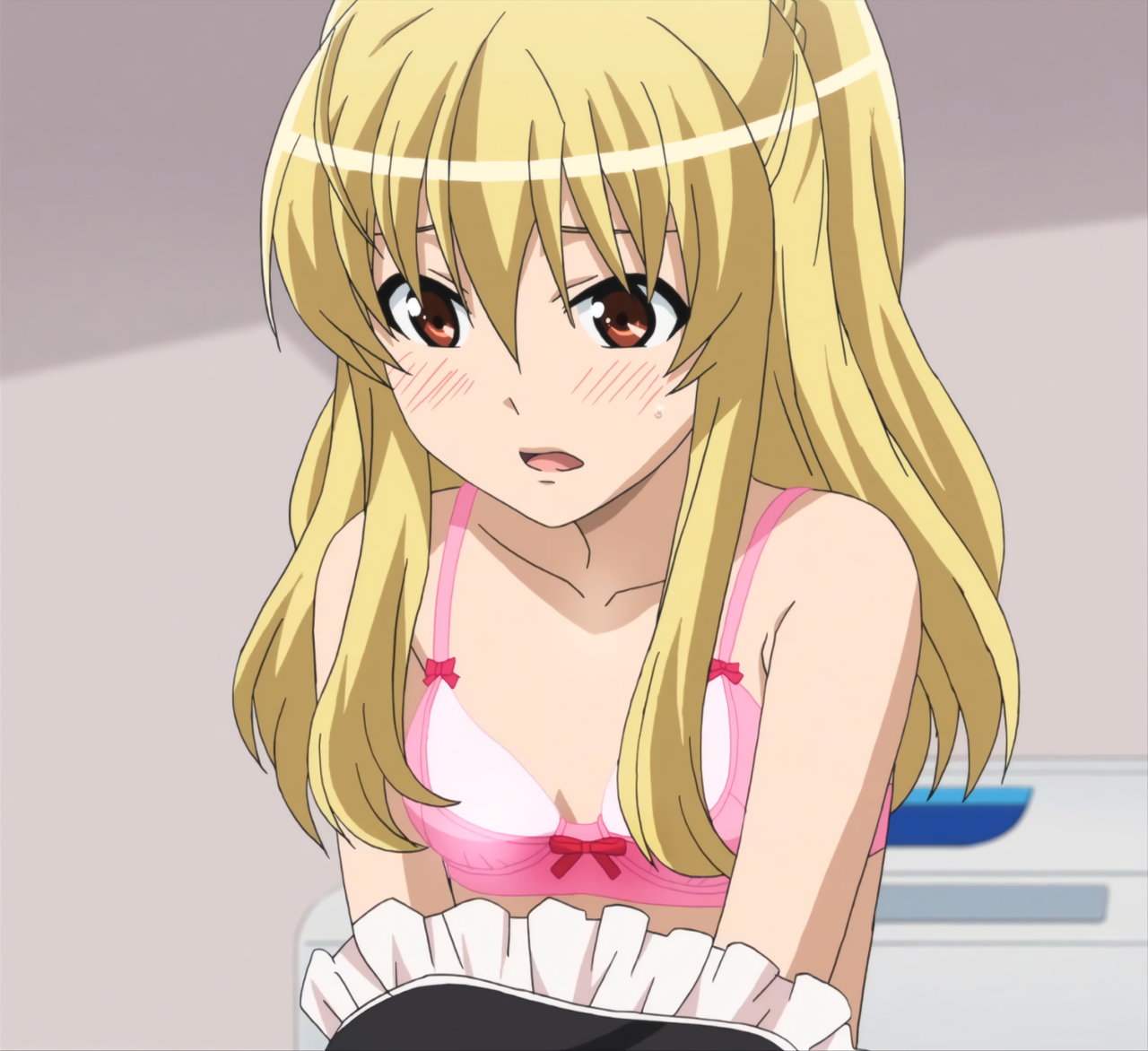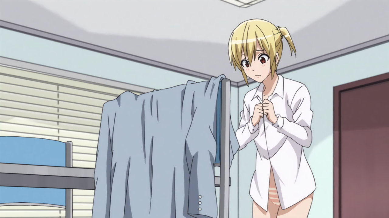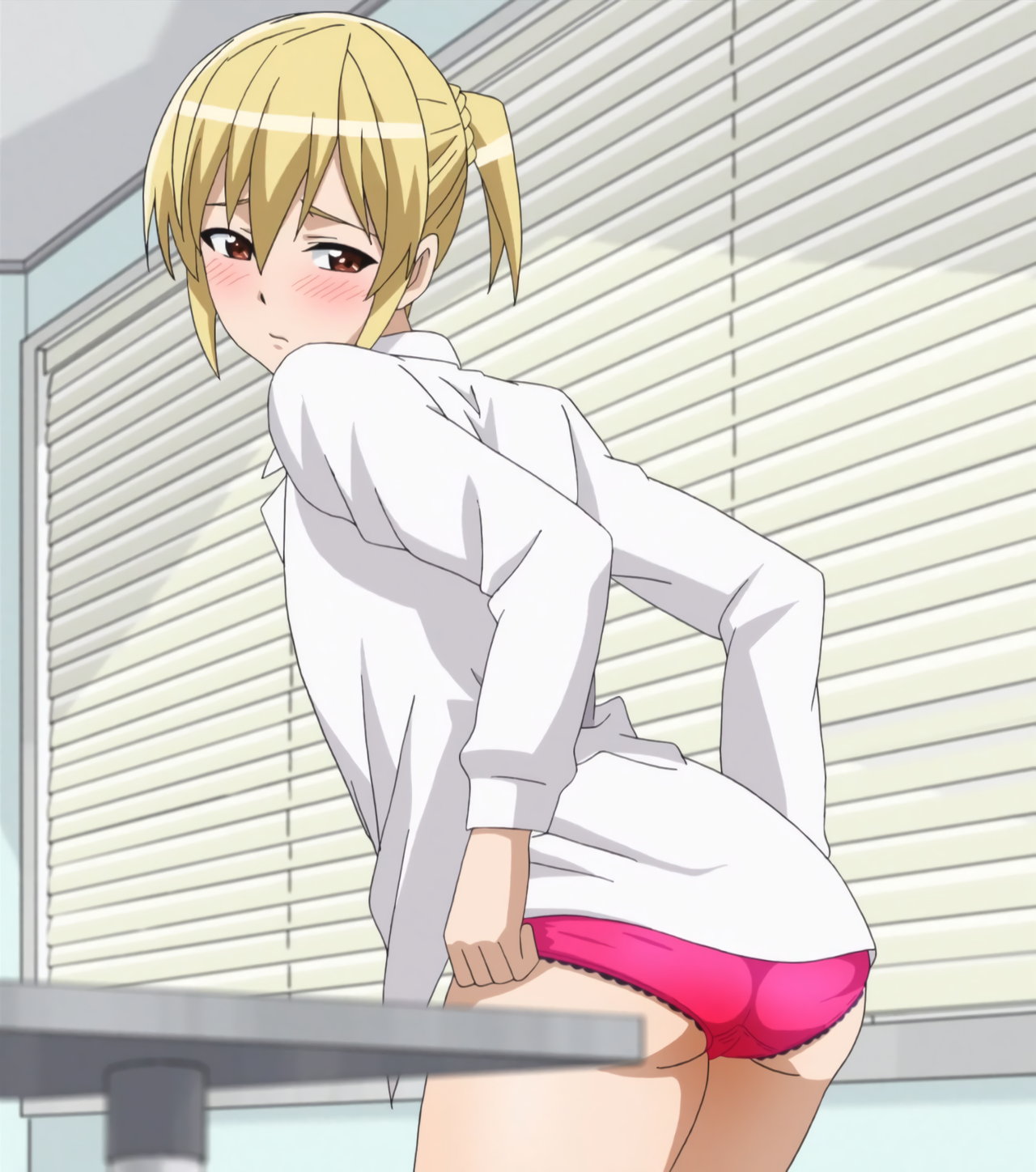 恥じらいながら、ブラジャー姿を見せようとするみはり。しかし勇気は、資料用パンツを見に来ただけであった。