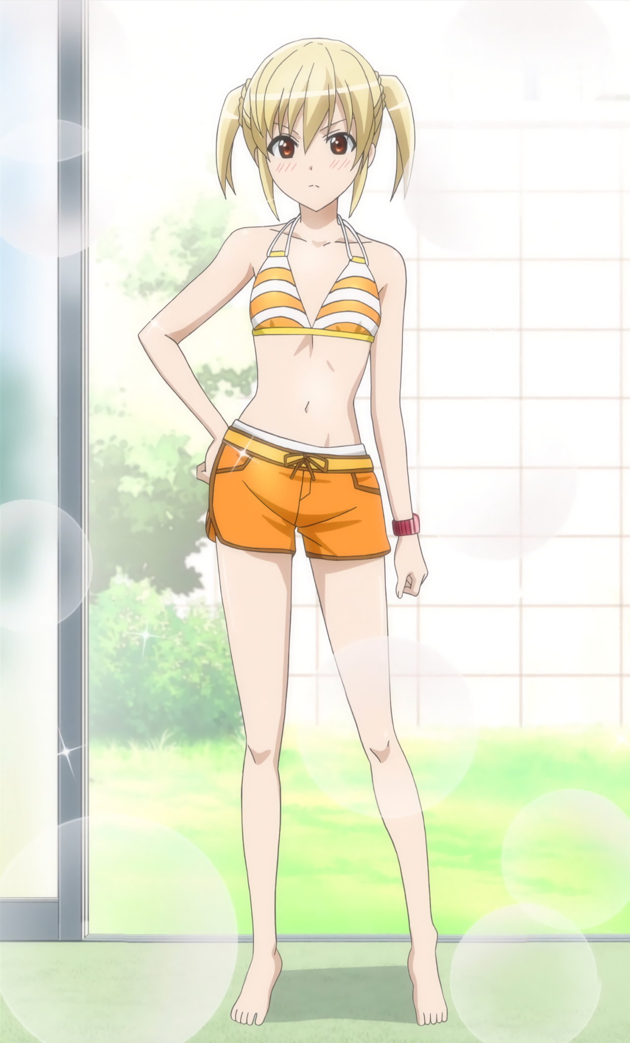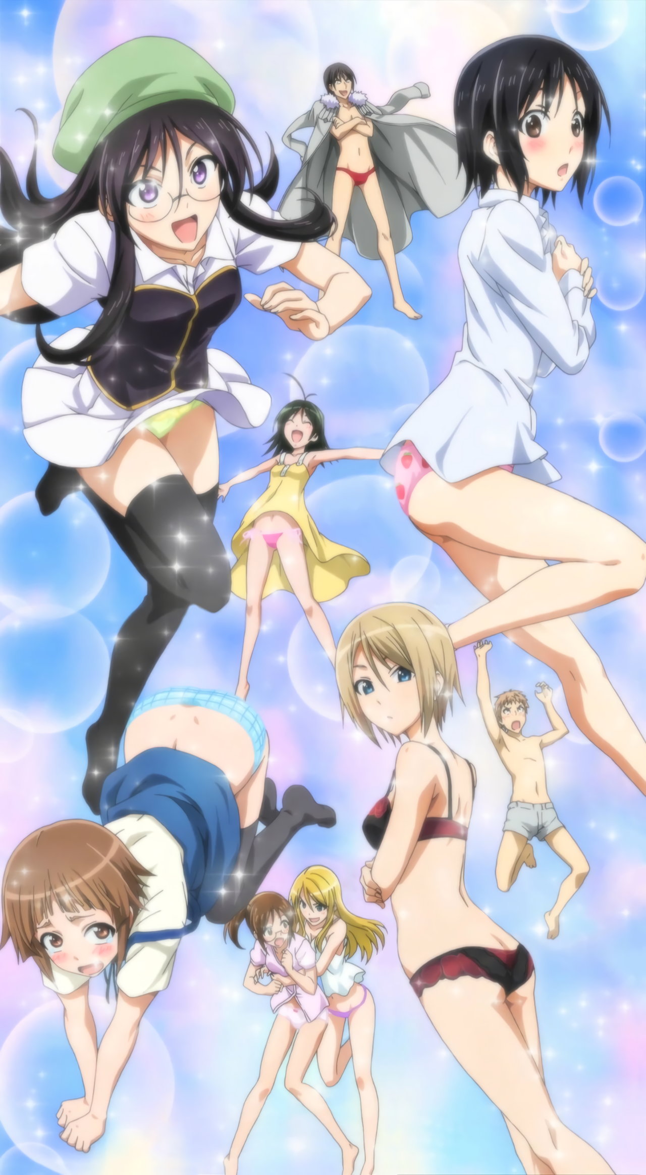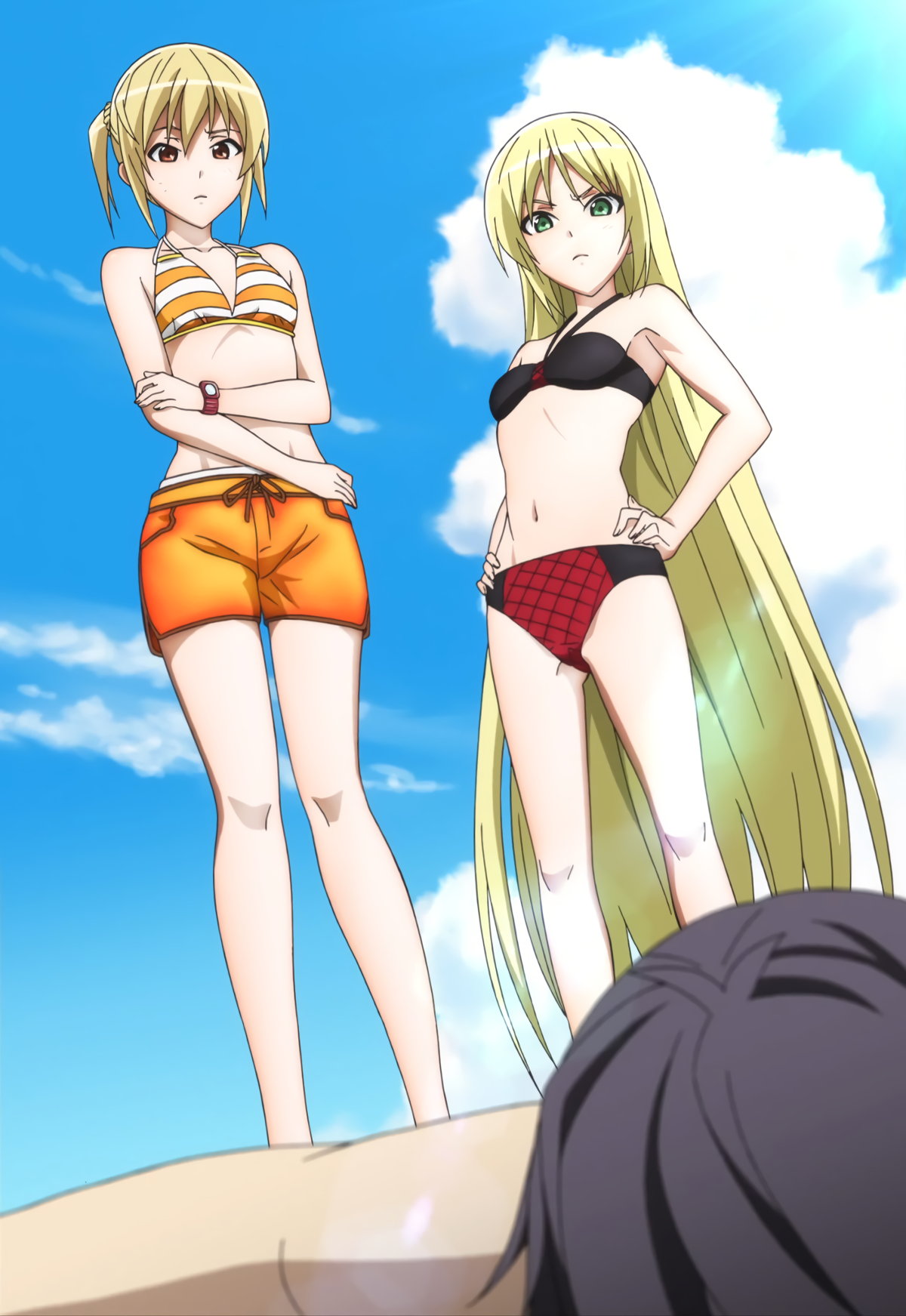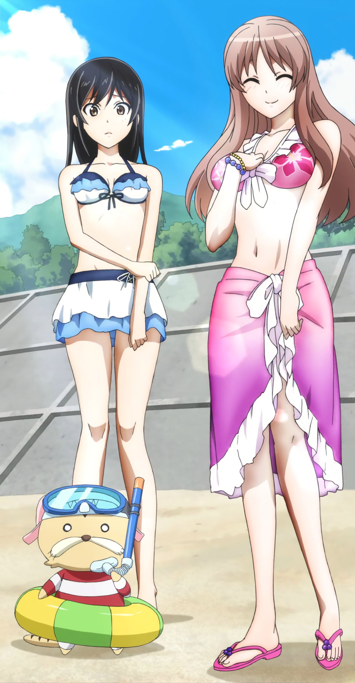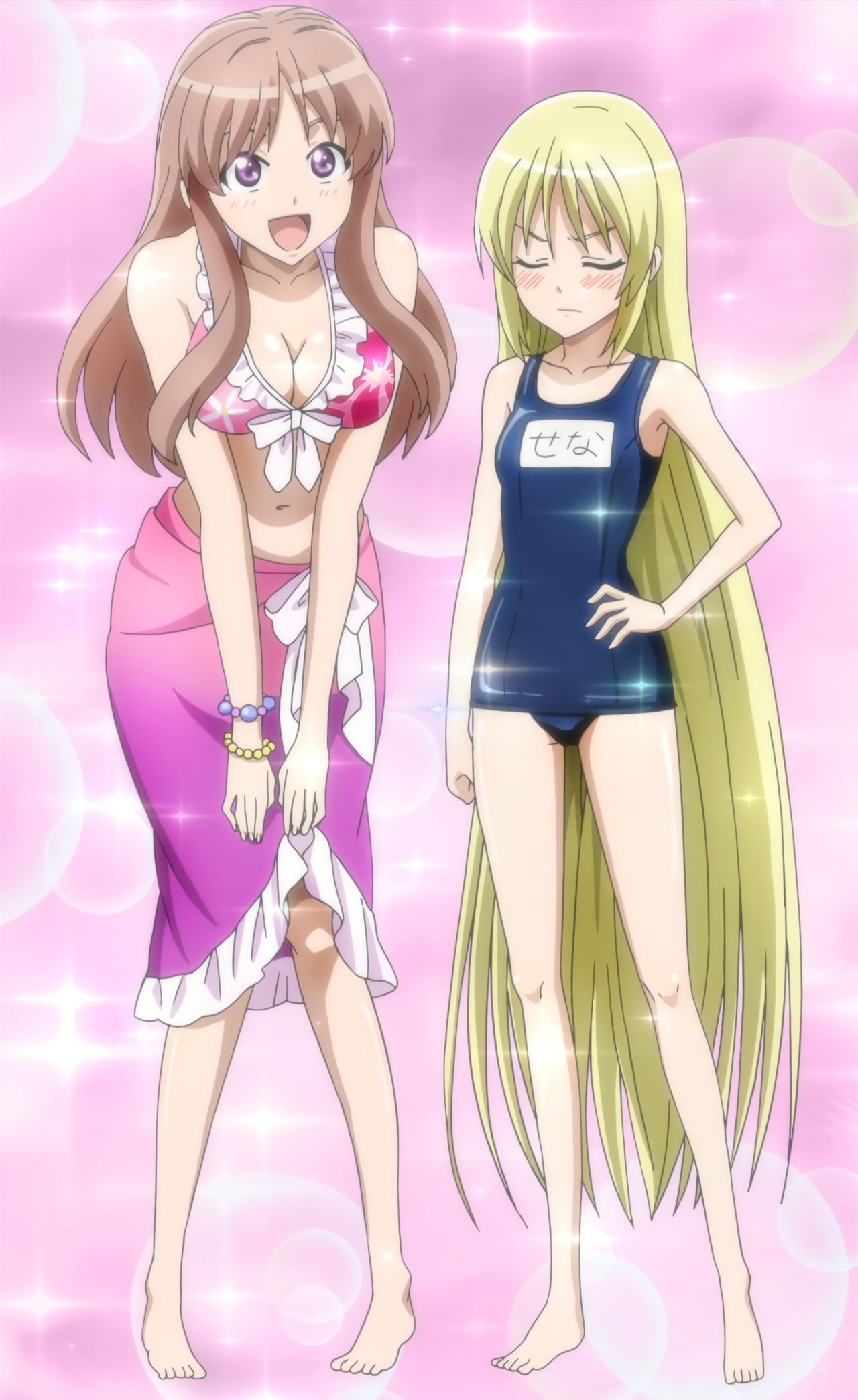海水浴に来た水着姿のヒロインたち。