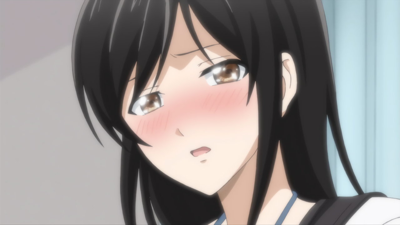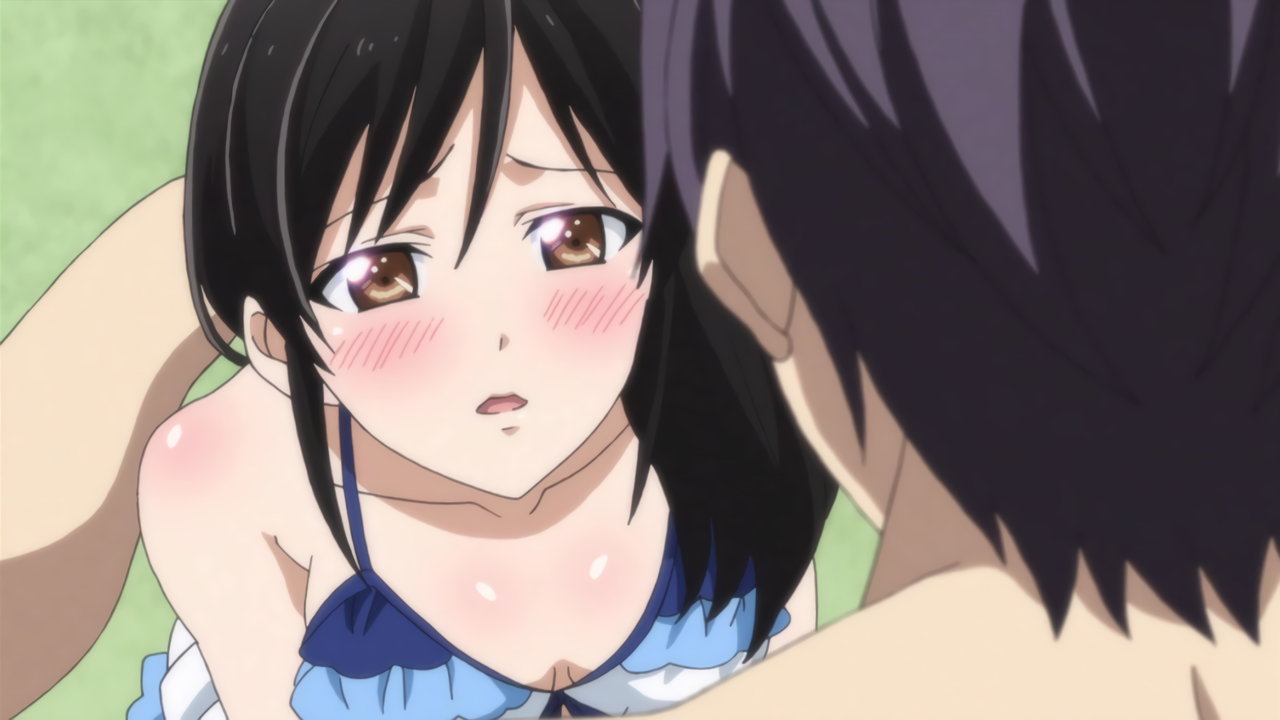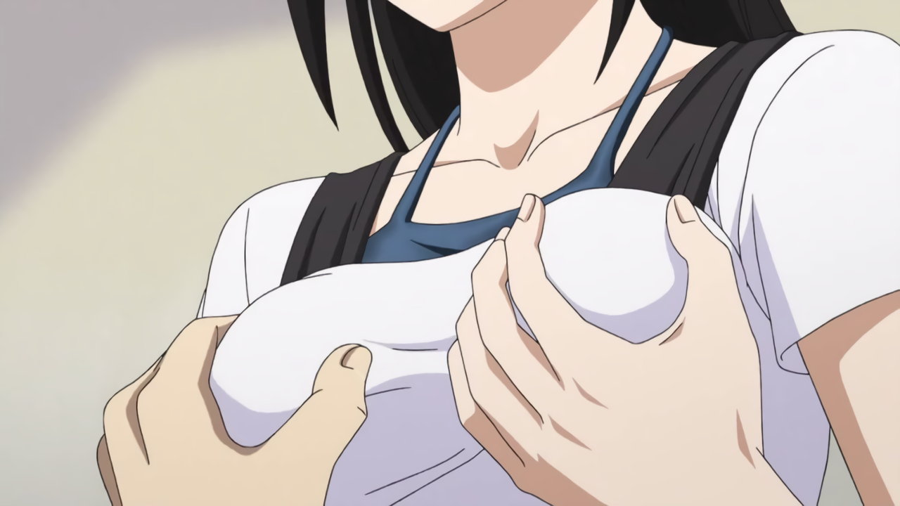 勇気に乳を触られて赤面する沙穂都。