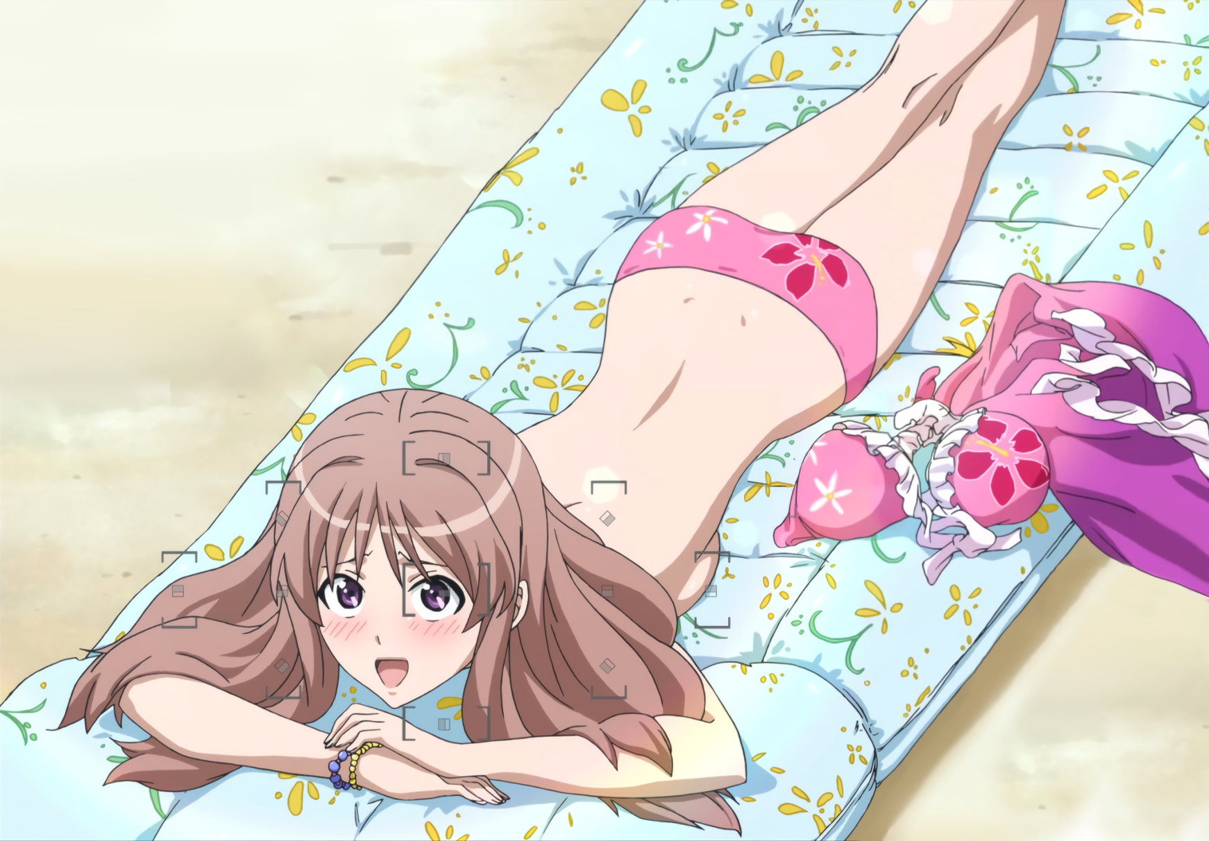 ビキニトップを外して甲羅干しをするりんなを撮影する勇気。
