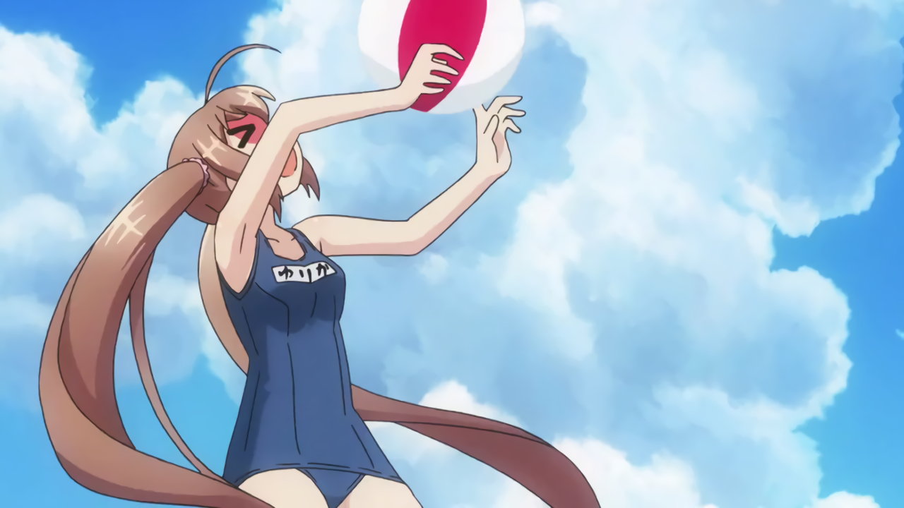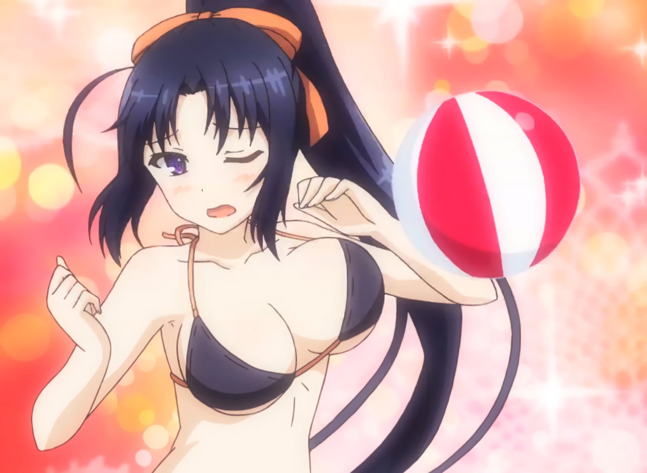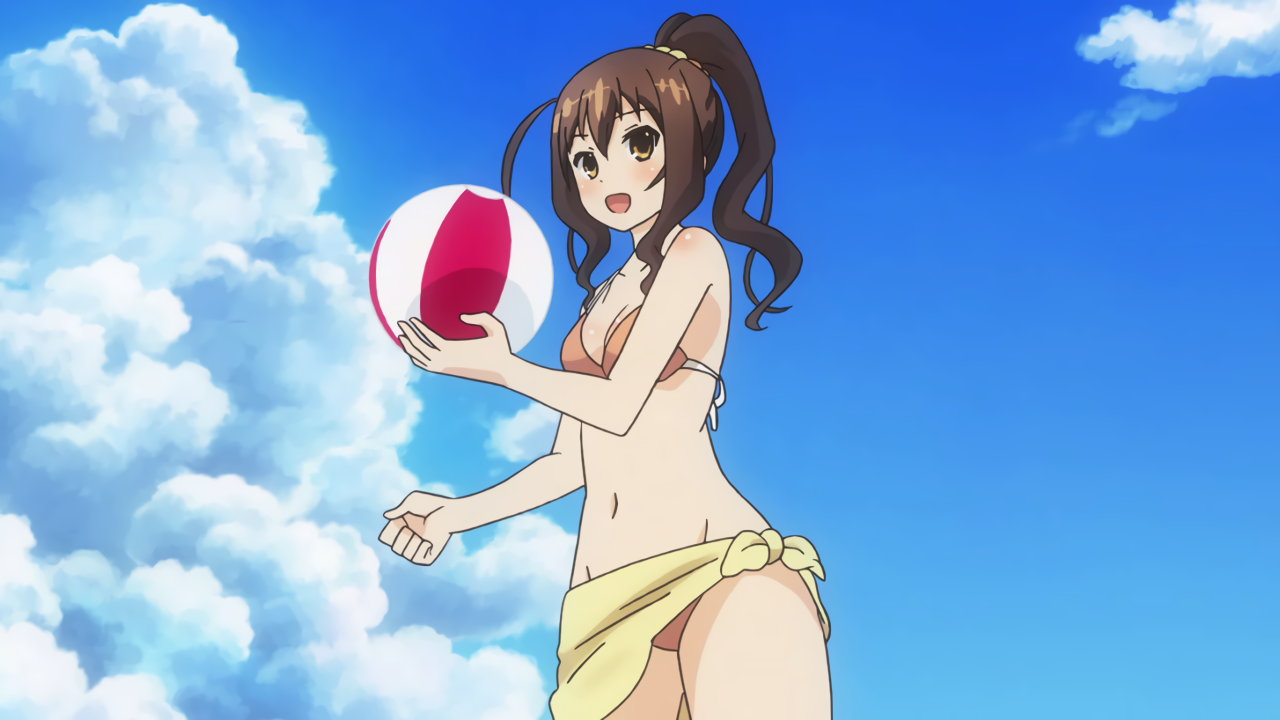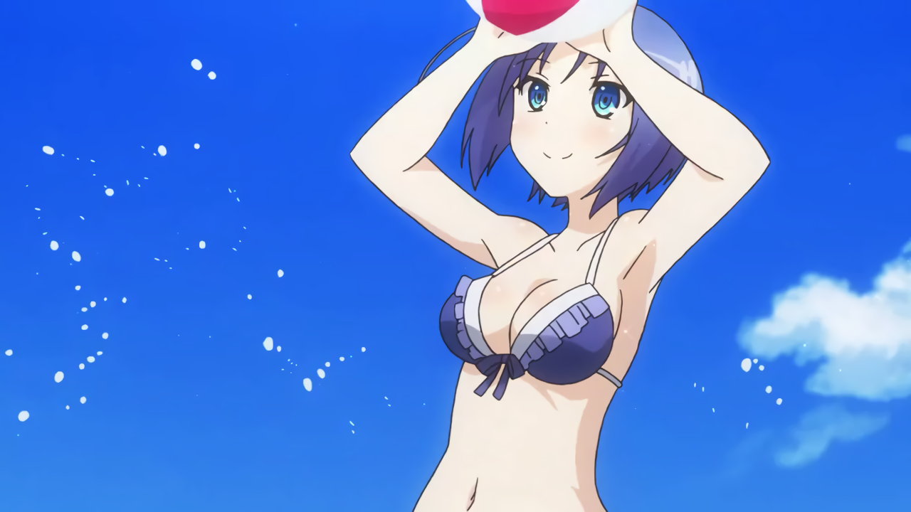 巨乳を見せながらビーチバレーをする、ビキニ姿のキリハ。