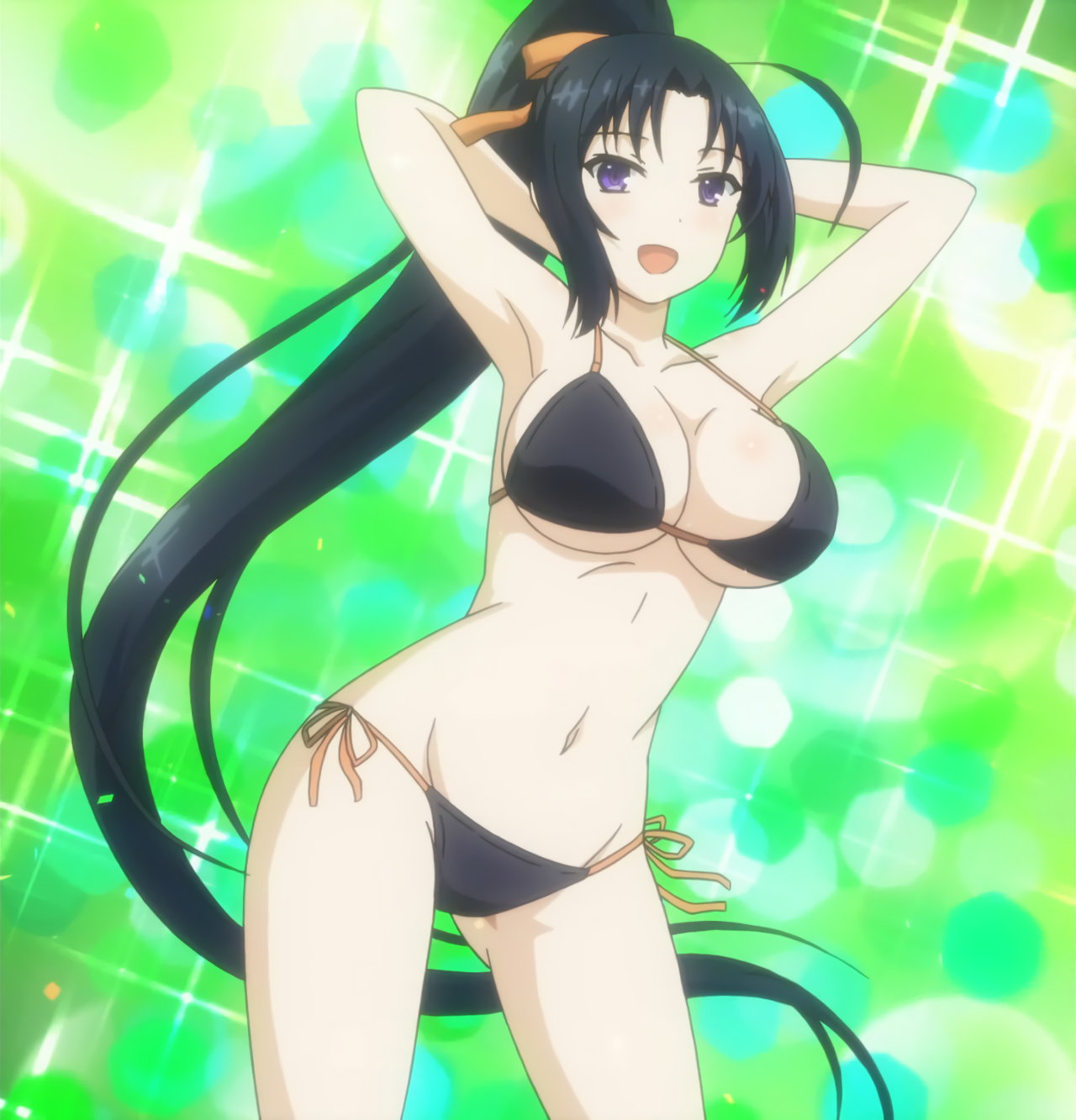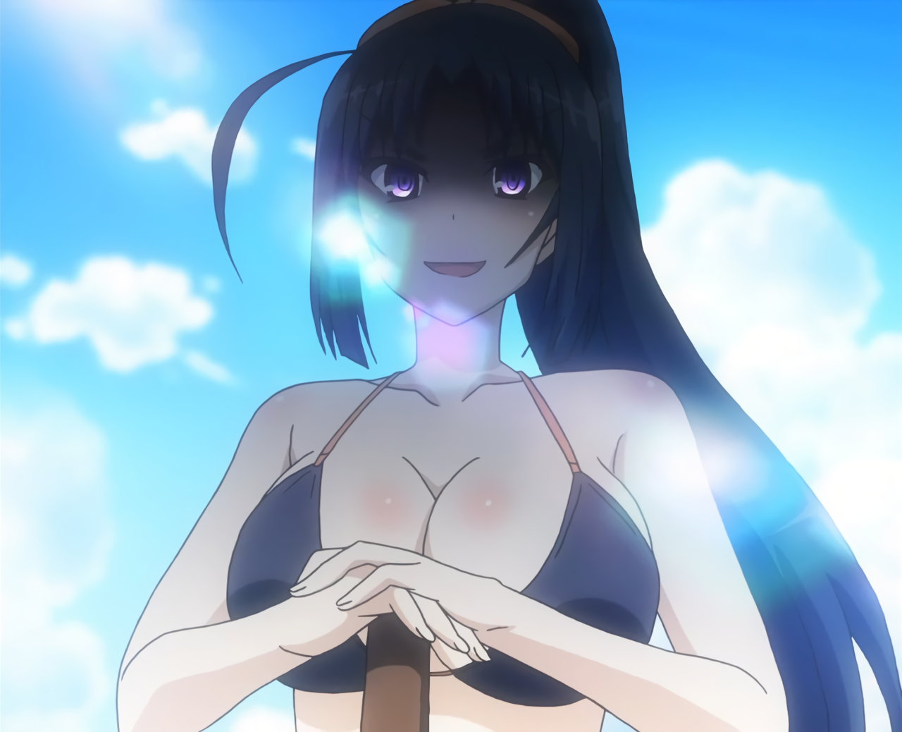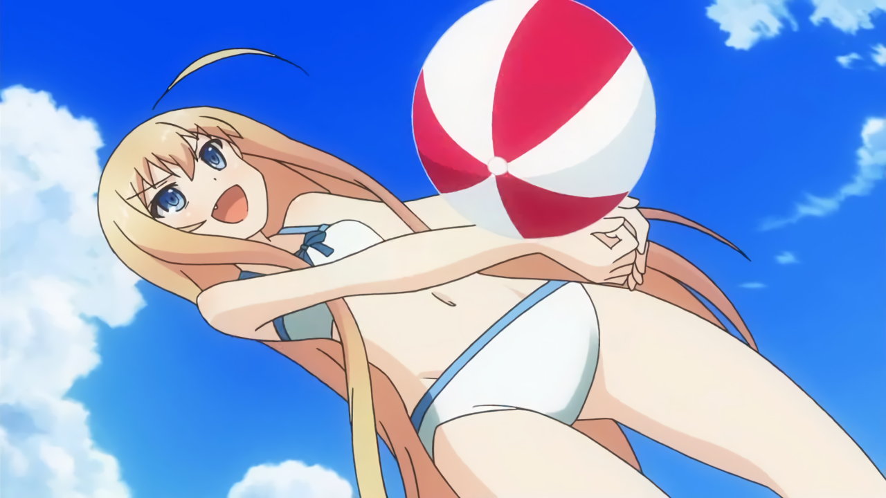 巨乳を見せながらビーチバレーをする、ビキニ姿のキリハ。