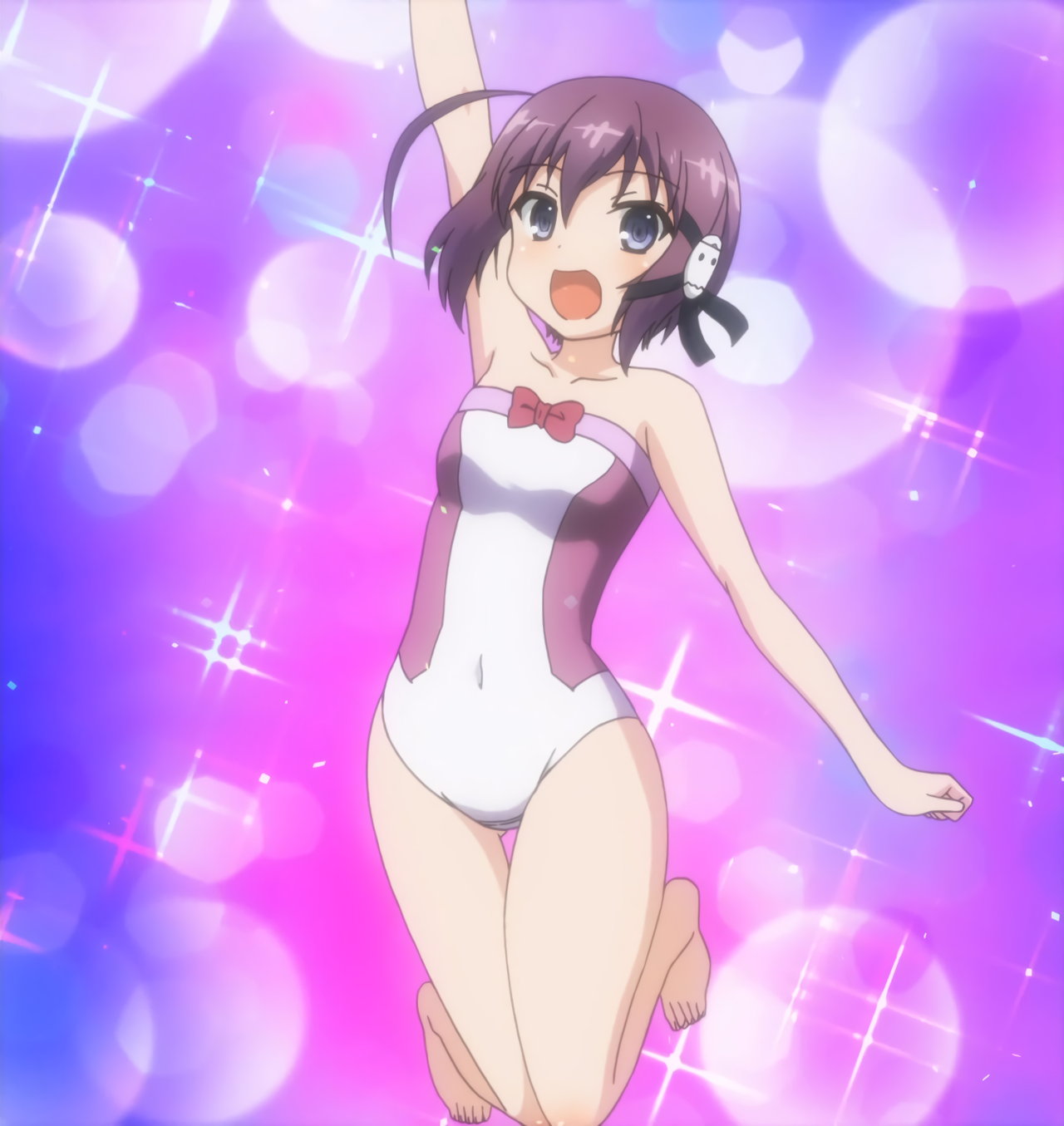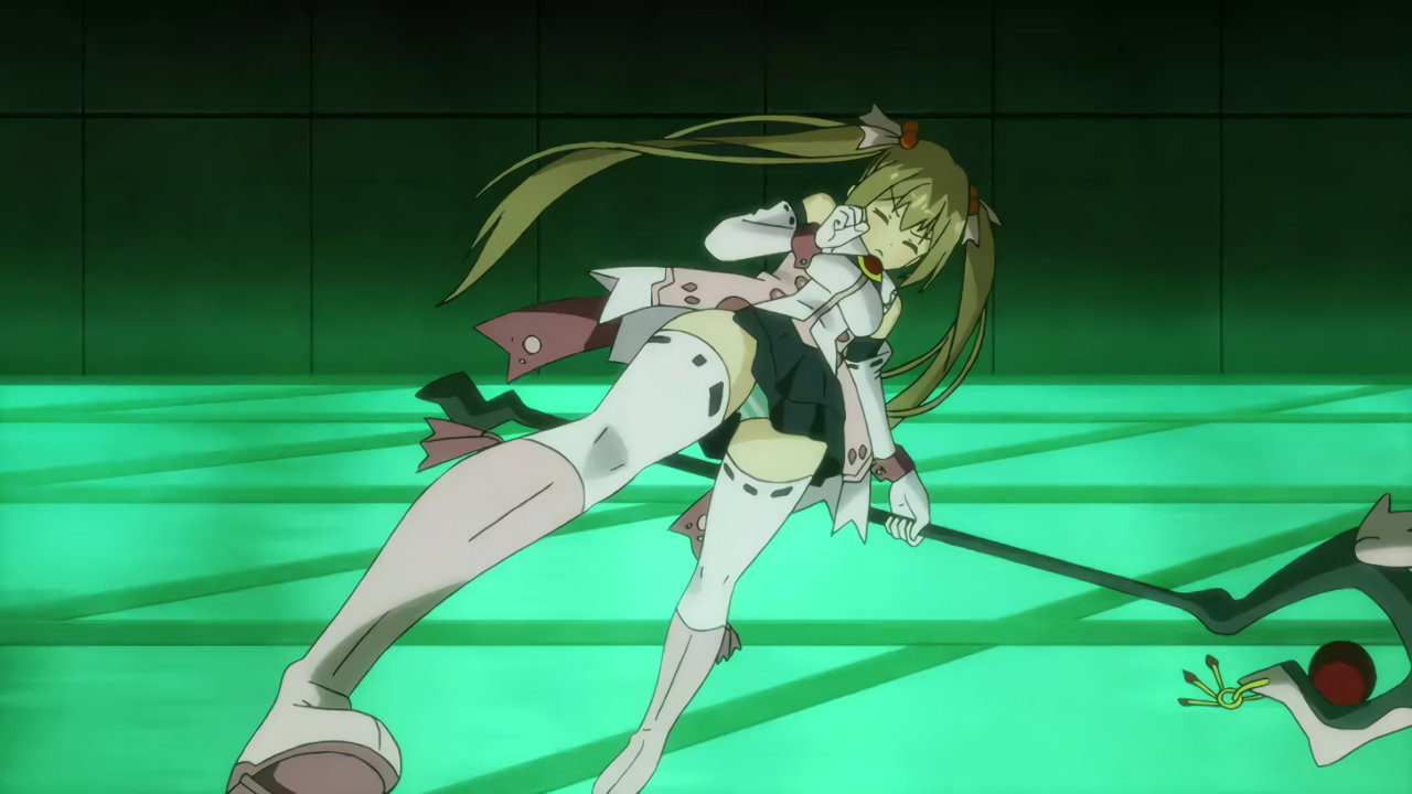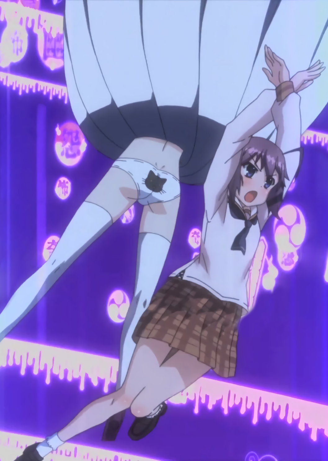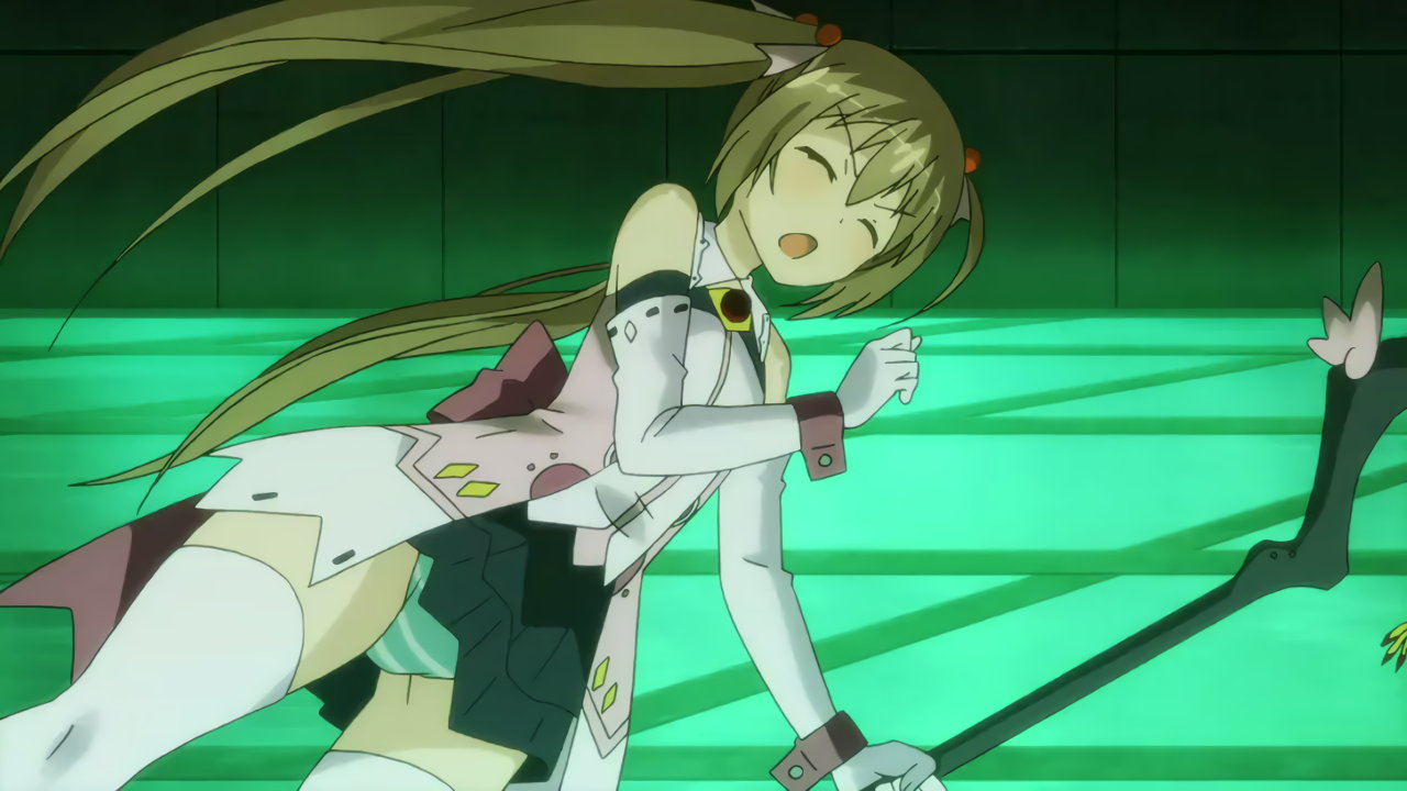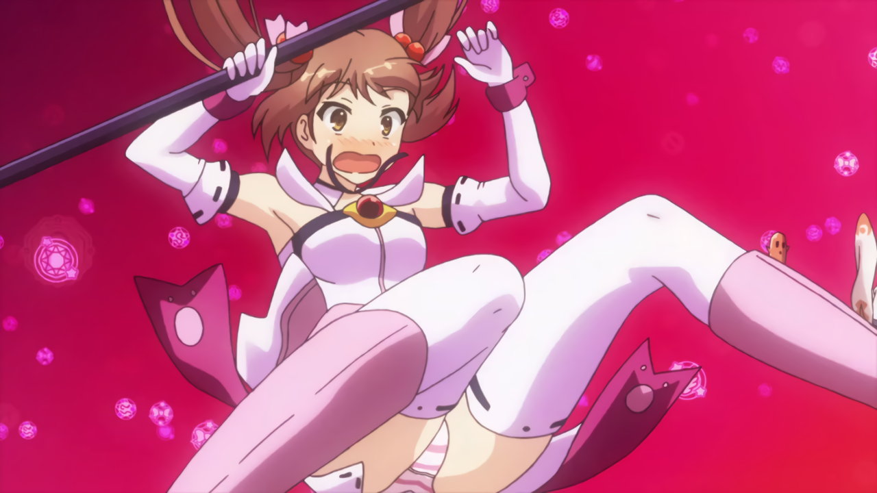 敵の攻撃を受けて吹き飛ばされる際、パンチラするゆりか。