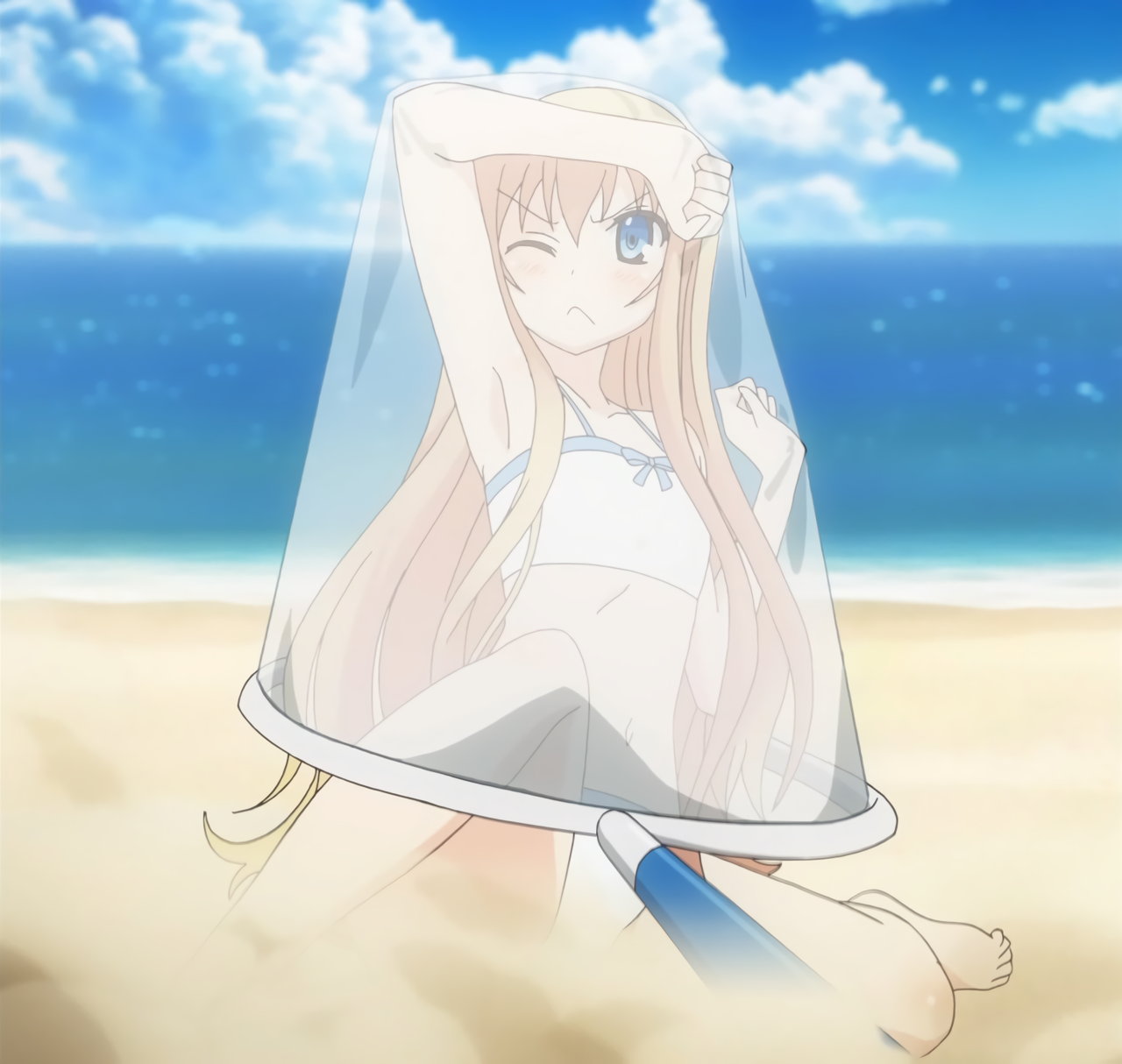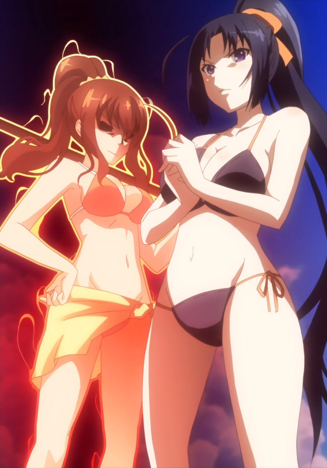 海で戯れる水着ヒロインたち。