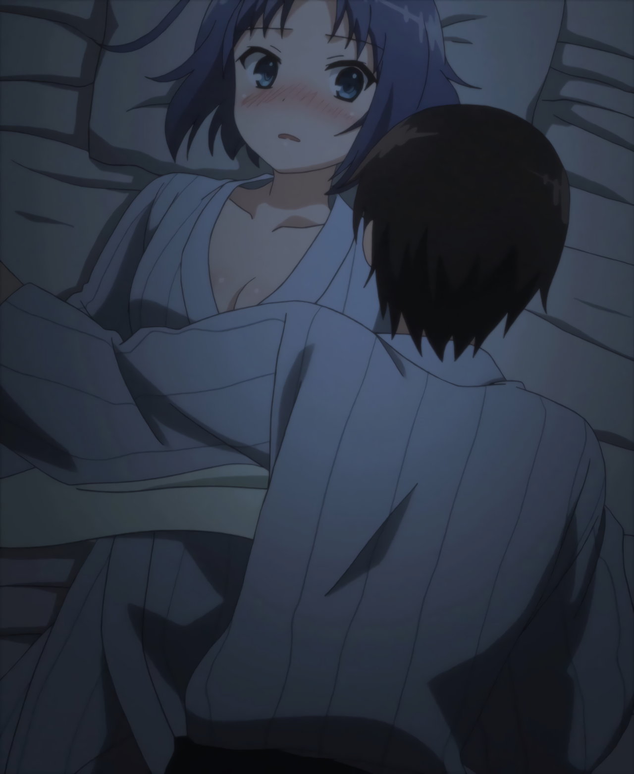 夜、寝惚けた孝太郎に抱きつかれて赤面するルースカニア。