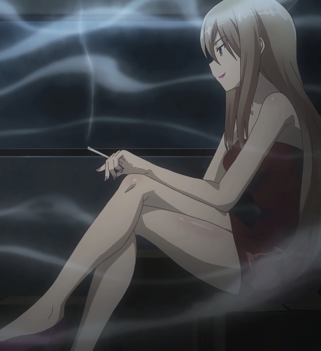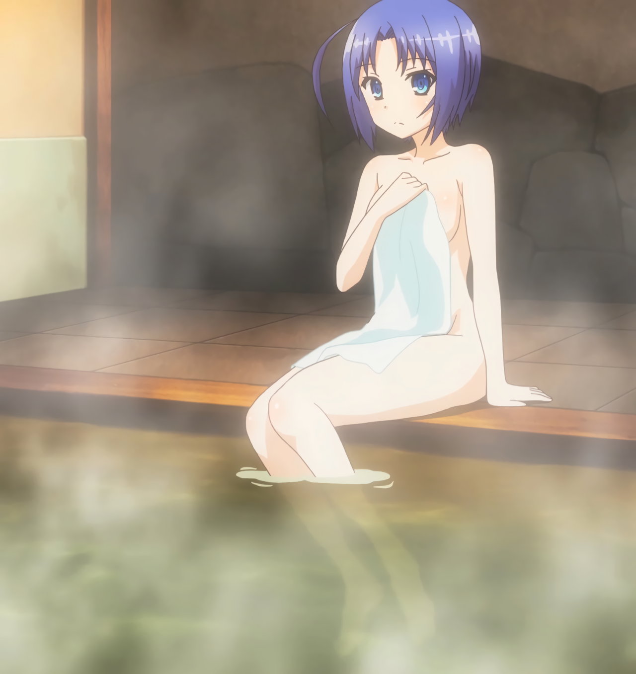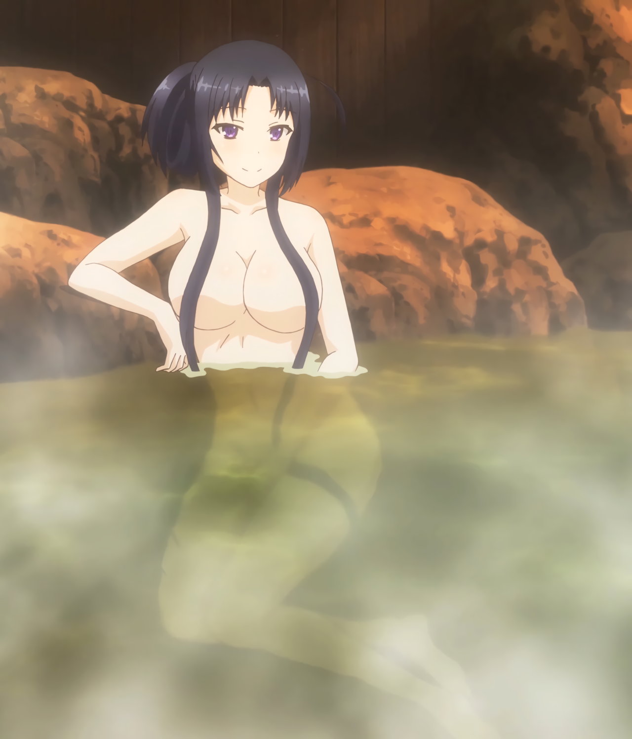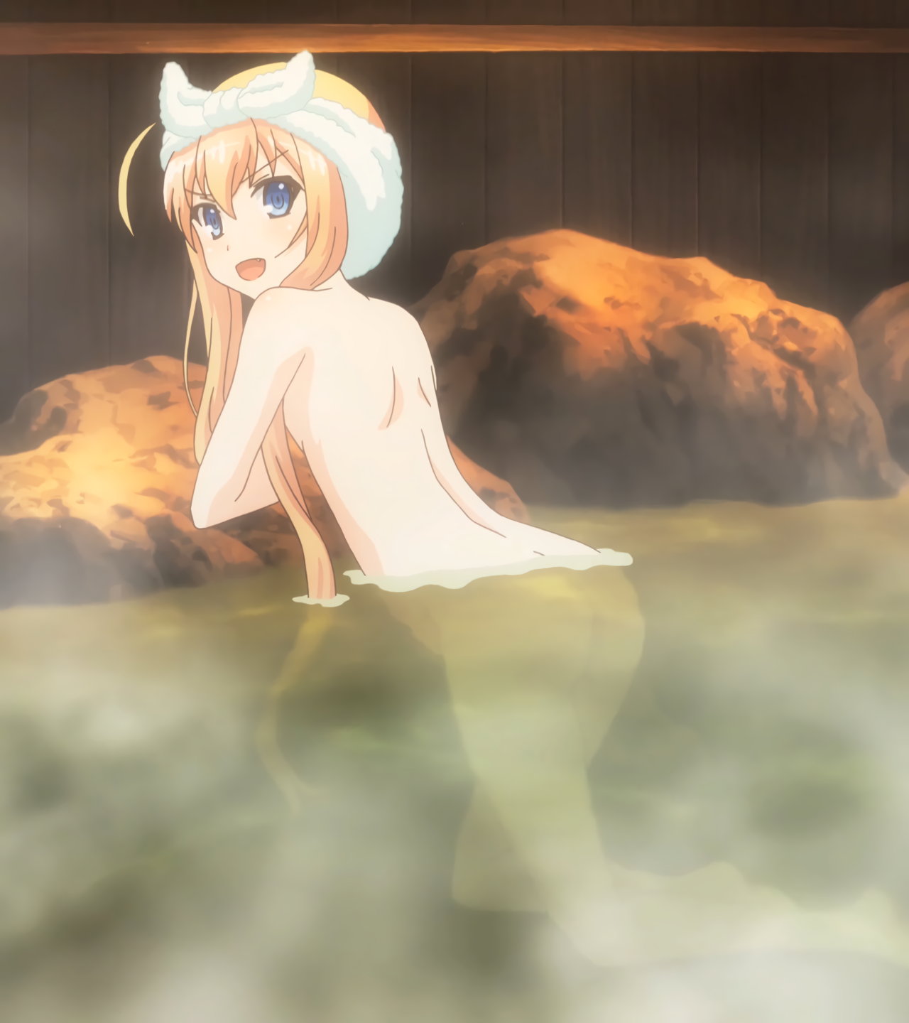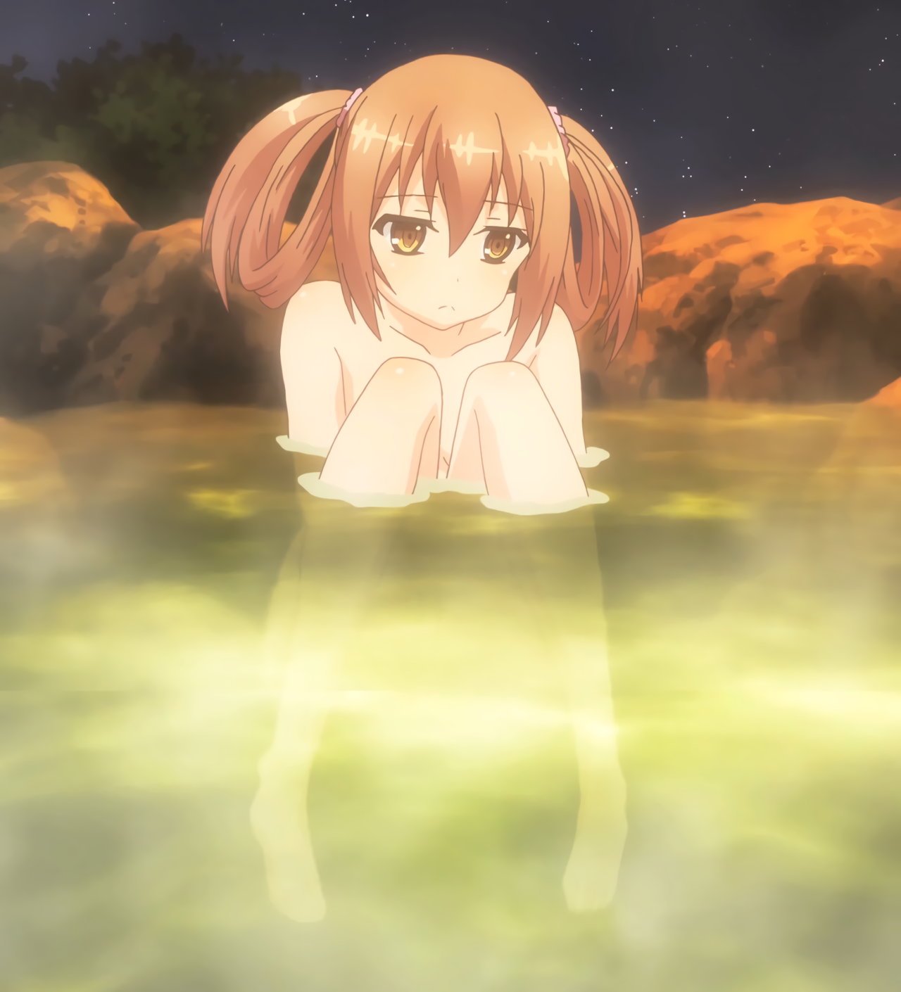 露天風呂に入浴中のヒロインたち。