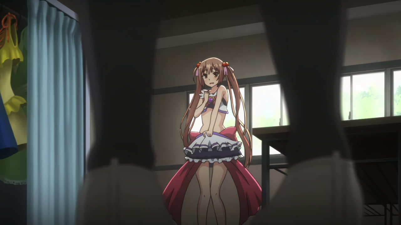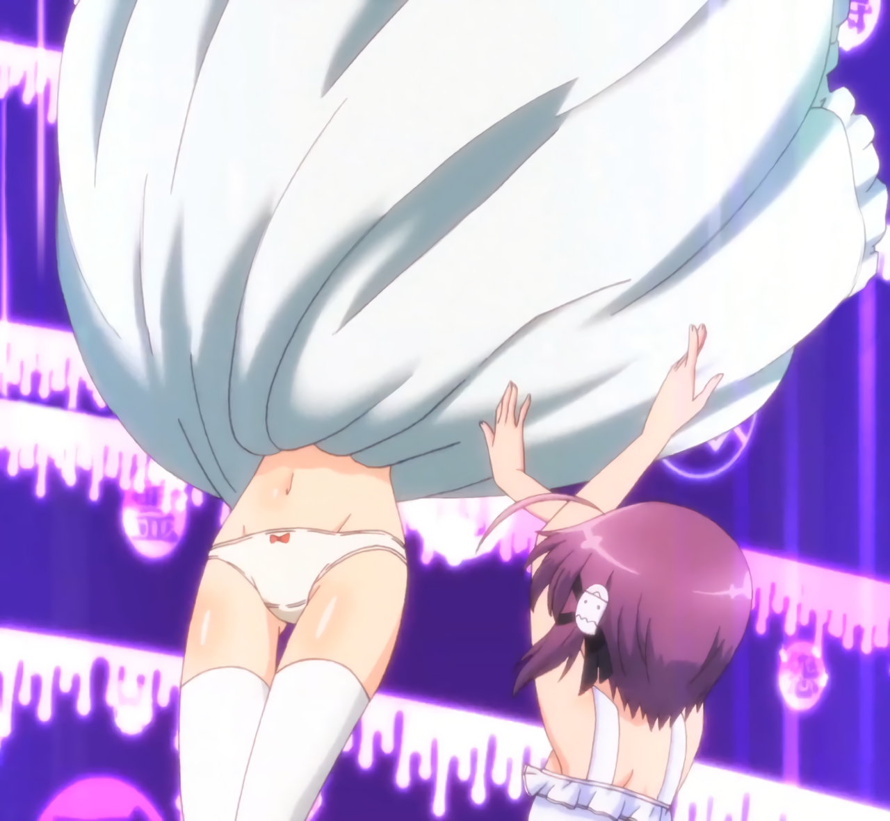 早苗にスカートを捲られ、パンツ丸見えのティアミリス。
