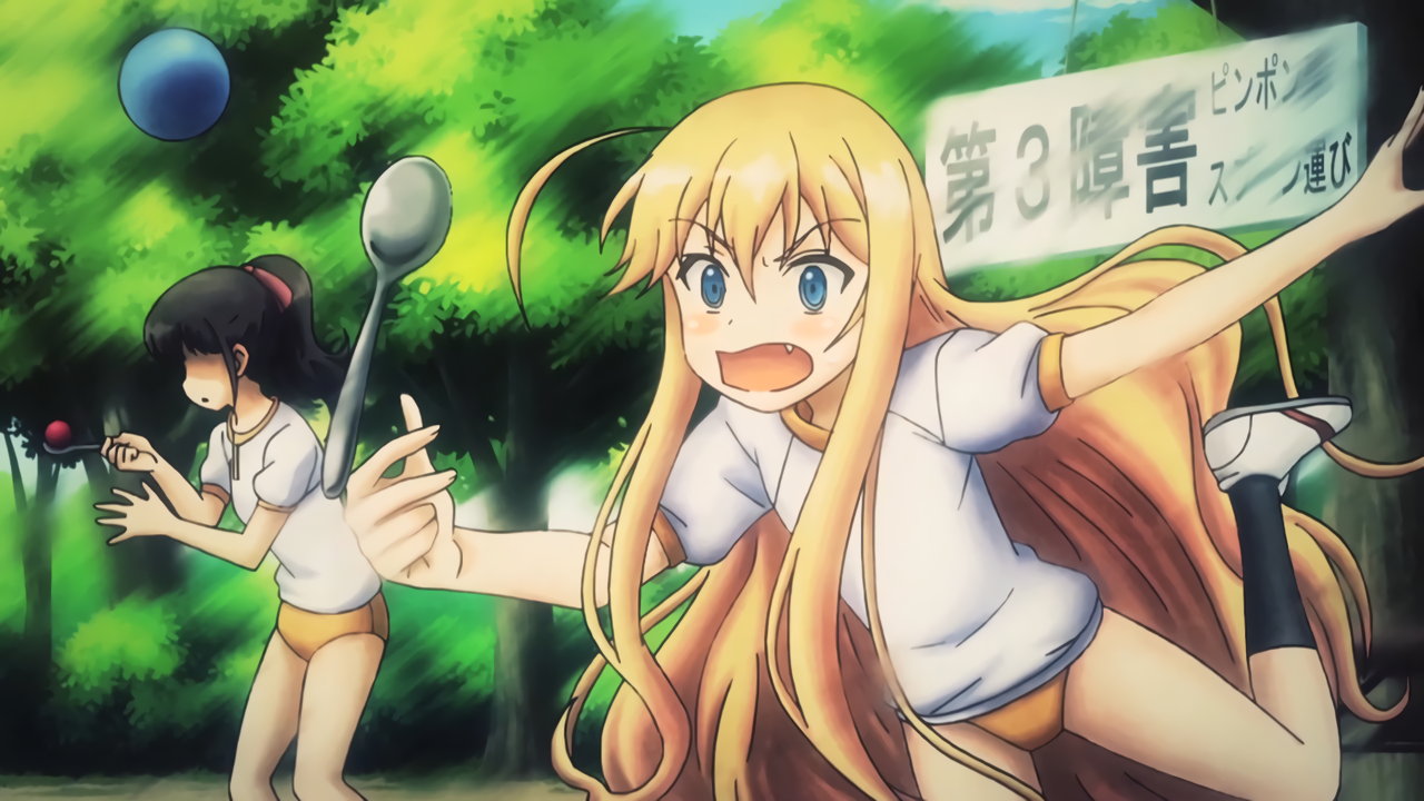 障害物競走に出場する、ブルマ体操服のティアミリスたち。